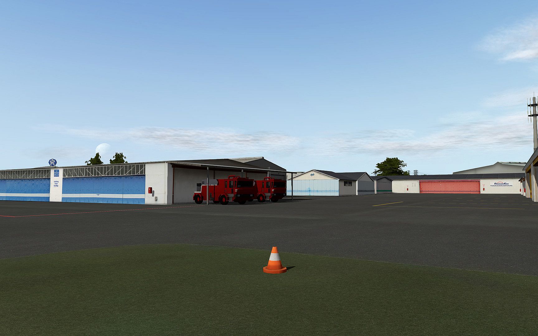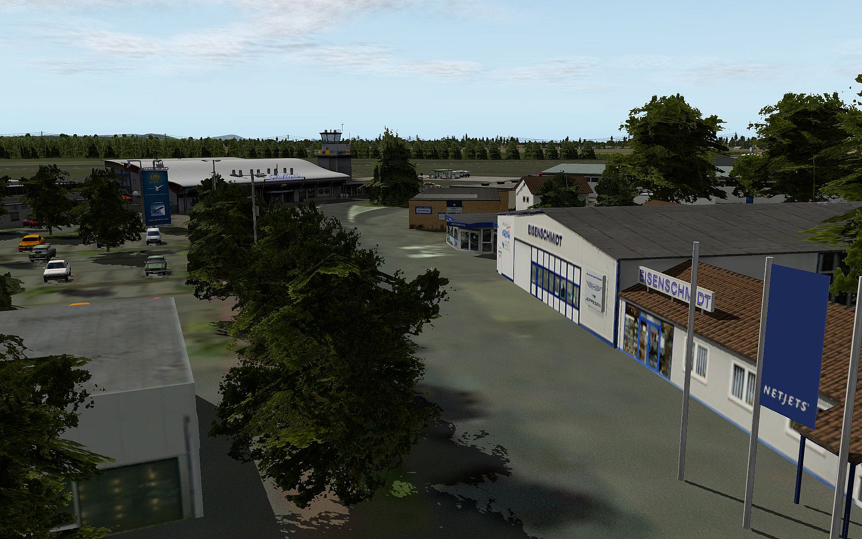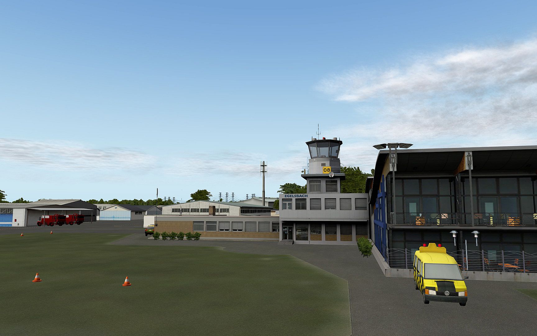 In combination with the photo realistic textures of the buildings and vehicles and a 0.5m/pixel ground texture resolution, the scenery Frankfurt-Egelsbach looks very authentic. The taxiway and runway displays are built according to the original plans. With its high-resolution day and night textures, the animated wind display on the tower and several other animations like hangar doors and the fire brigade the airport feels virtually aroused.