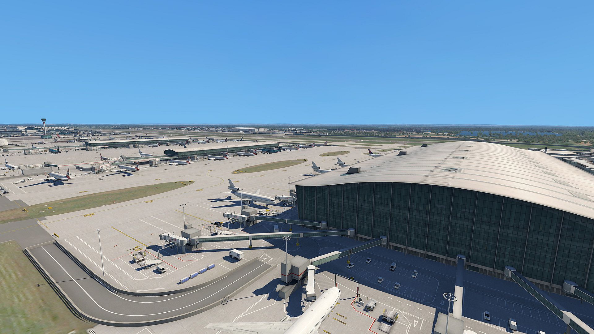 Find out what commercial aviation is all about by joining the traffic of the world´s third busiest airport. The scenery covers around 42 square kilometres in total with fully detailed buildings at the airport, including the new T2 and T2B terminals. Fully customized high resolution aerial ground textures, detailed ground markings and the actual taxiway layout with new rapid runway exits and taxiway links make it a perfect rendition while use of LOD technique will give you the best possible performance..