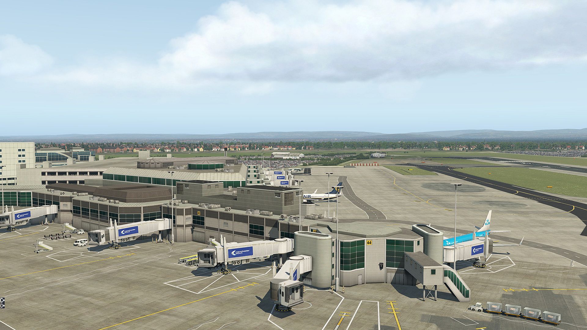 Thanks to high-resolution ground textures and HDR night lighting, this add-on for X-Plane 11 renders a realistic and modern recreation of the airport at every time of day. The textures also feature physically correct lighting and reflection effects. Animated service vehicles, marshallers, and jetways bring the virtual Airport Manchester to life.