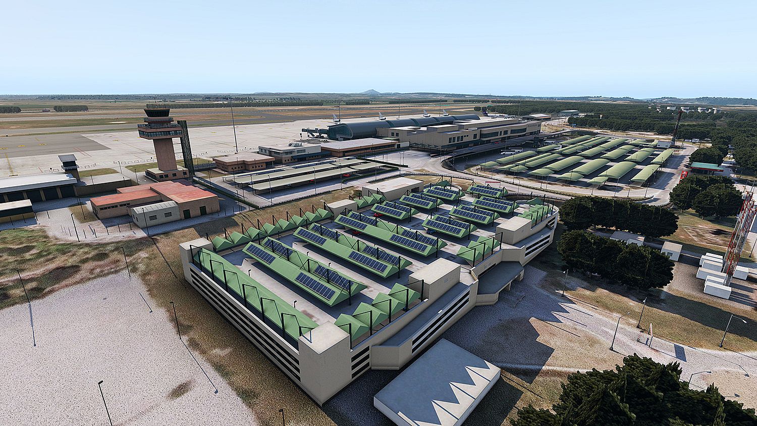 The ground markings, markings and lighting are up to date, as well as the state of development of Menorca Airport of 2016. Highly detailed, animated jetways are implemented using SAM. The mesh was also adapted in the airport area in order to remain as closes as possible to reality. An Ortho4Xp patch is also included to match the mesh.