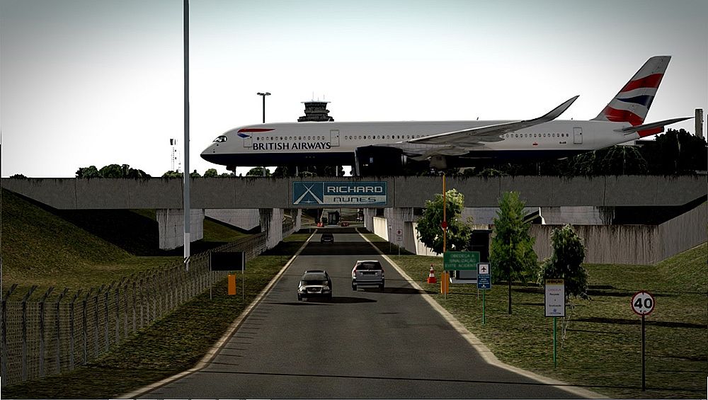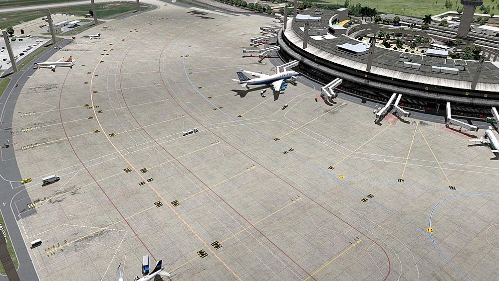 This scenario was building from studies and research on the International Airport of Rio de Janeiro / Galeão. This is a replica of the "real" airport, everything was done in accordance, general lighting, runways, taxiways, patios, decks, buildings, hangars, terminals and other, consistent with the Galeão Airport.