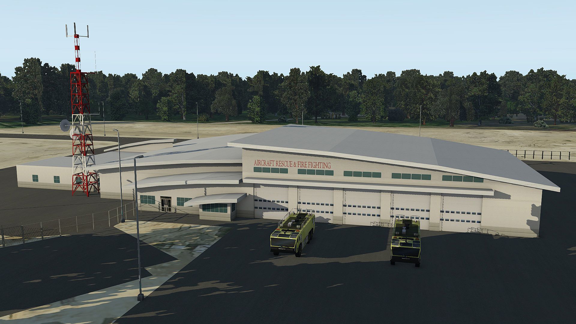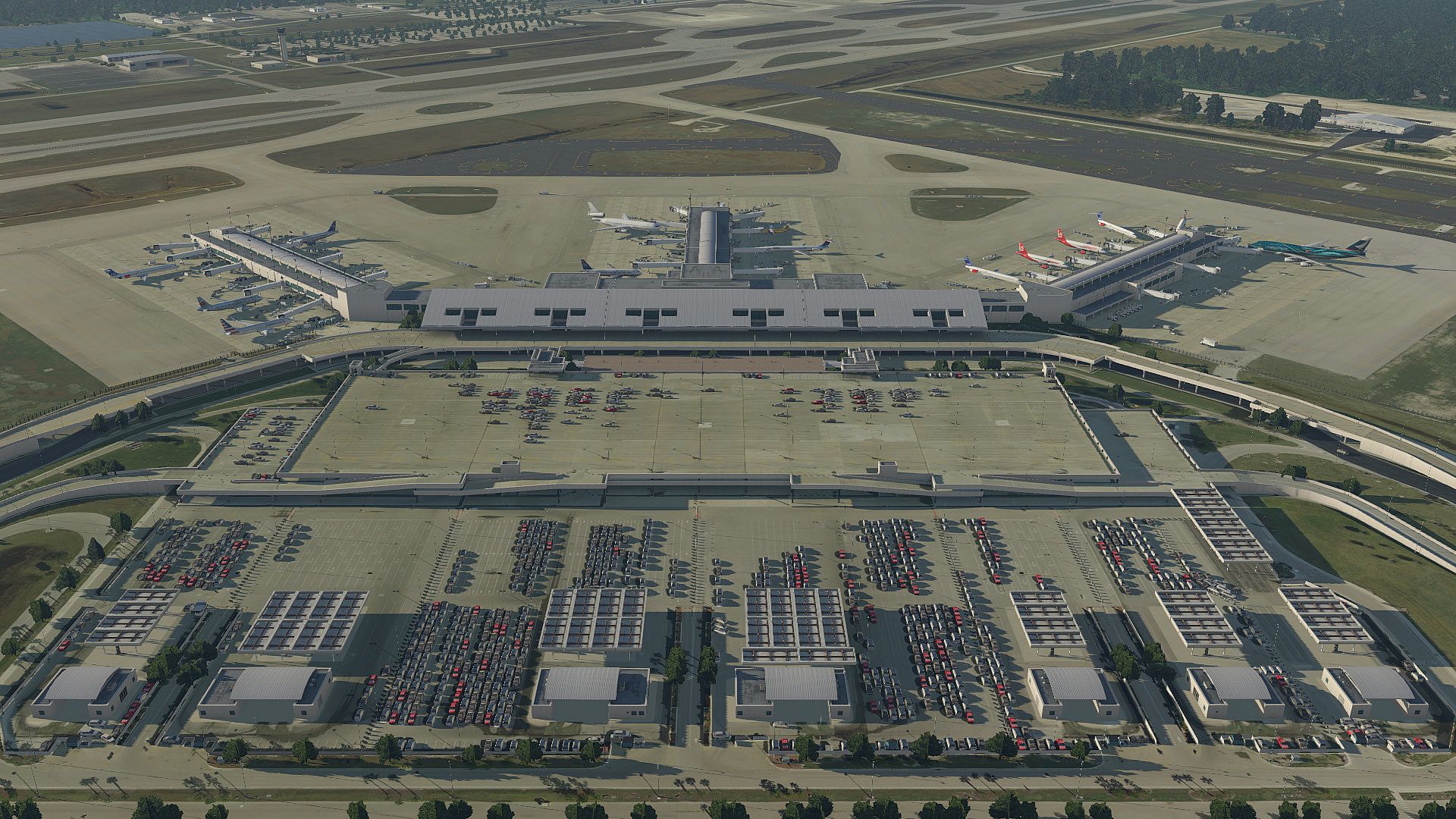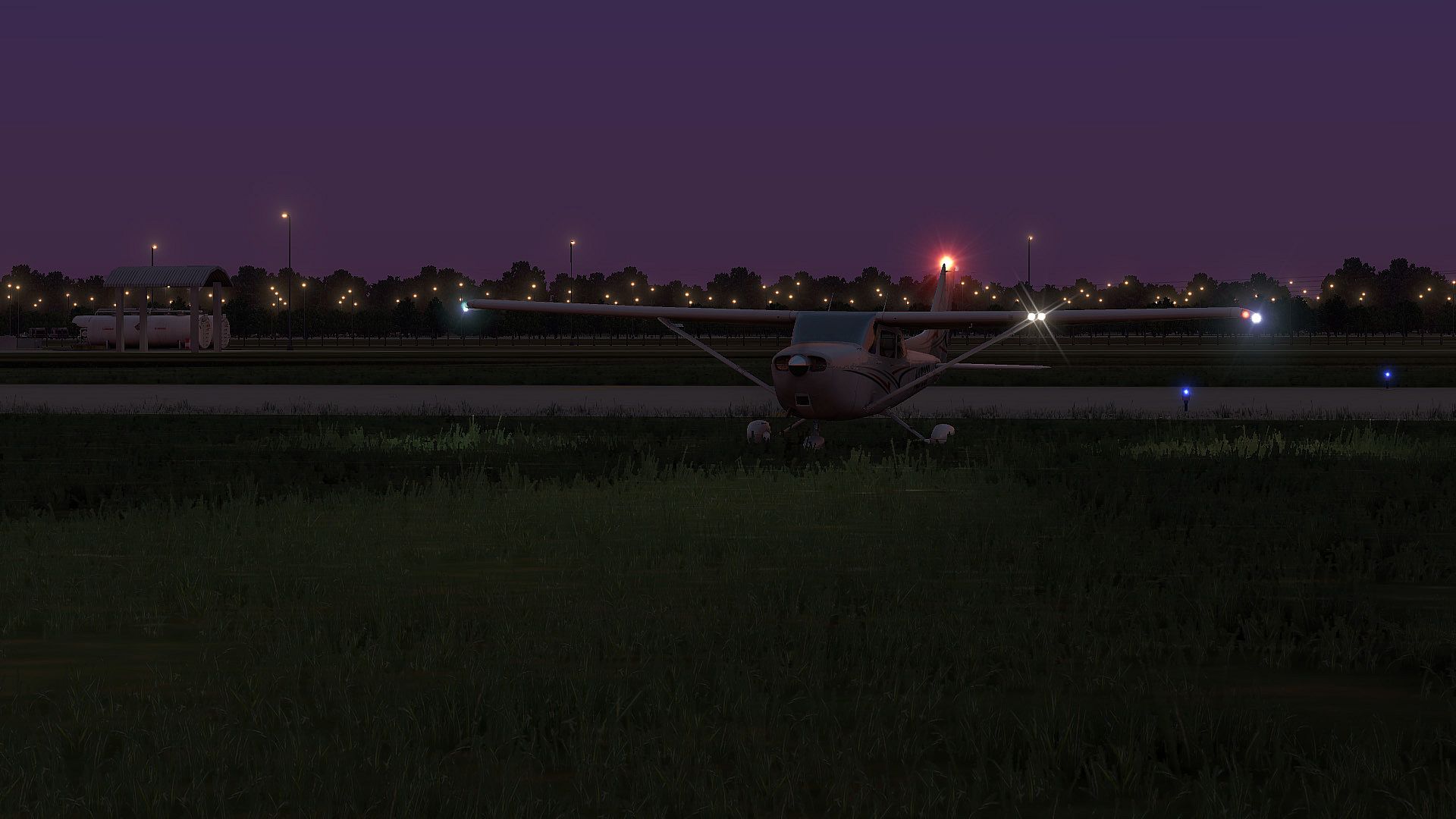 • Baked-in, ray-traced night illumination on the airport terminal building