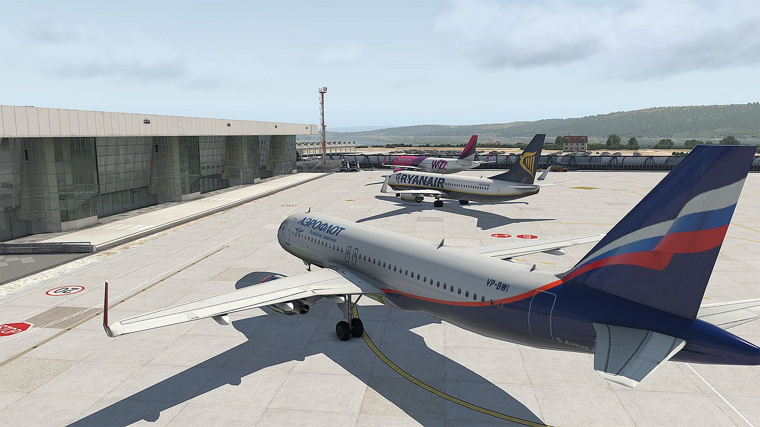 In the X-Plane version of Split, you can already park your aircraft in front of the newly built terminal, which opened on time despite rising costs.