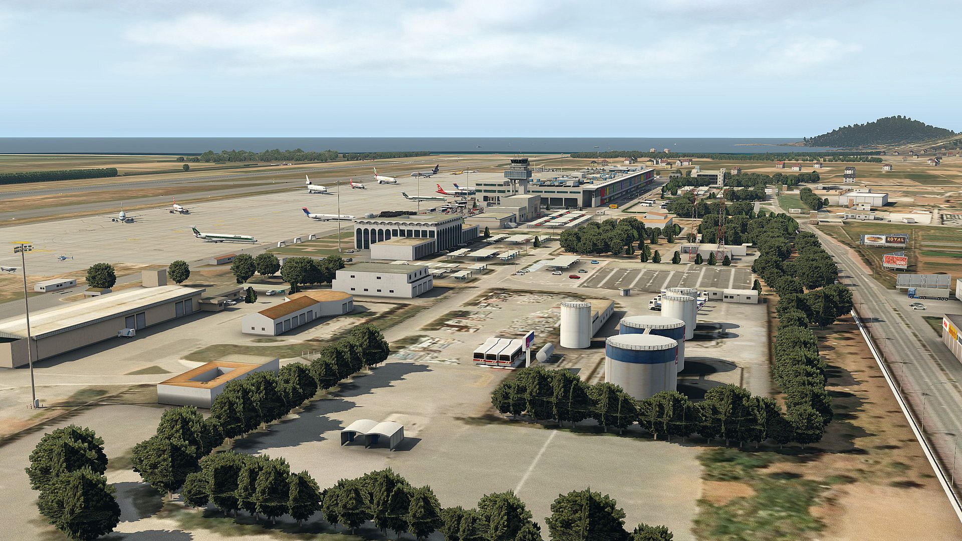 The international airport of Ibiza (LEIB) features numerous details and surrounding buildings. Moreover, fully custom SAM jetways as well as PBR ground textures ensure a realistic flight experience.