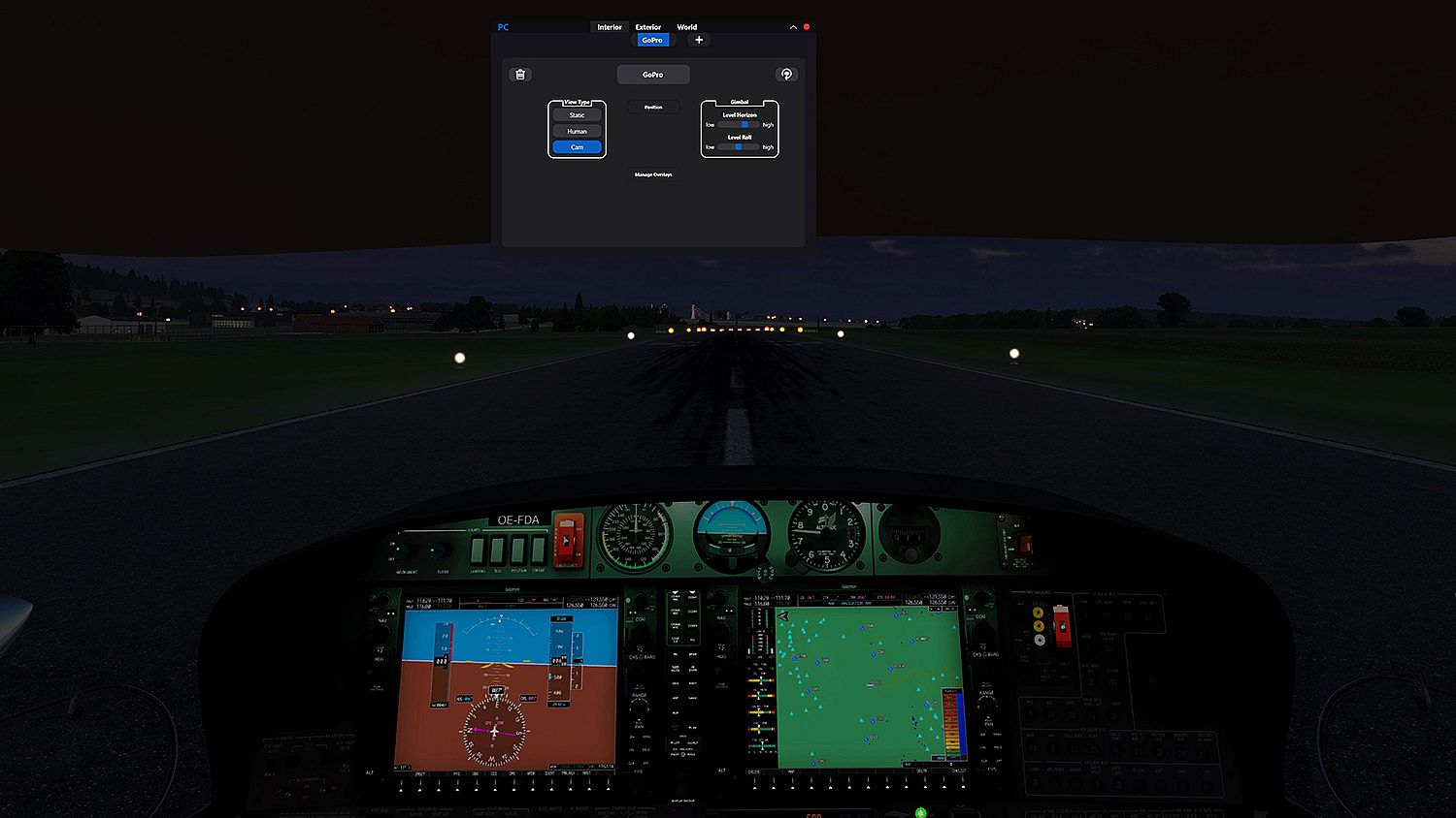 Create stunning tracking shots in and around your own aircraft or in the scenery of your choice. Use effects such as simulated breathing to create a realistic pilot view.