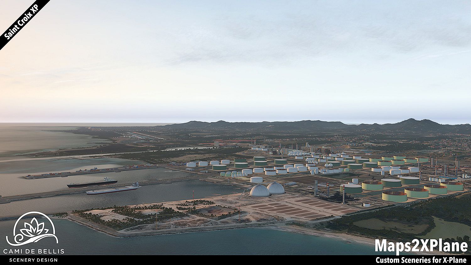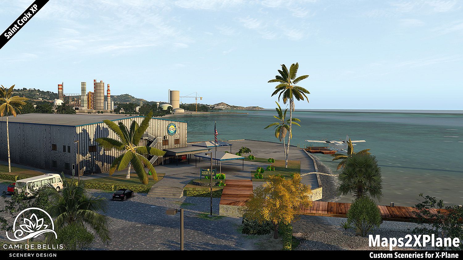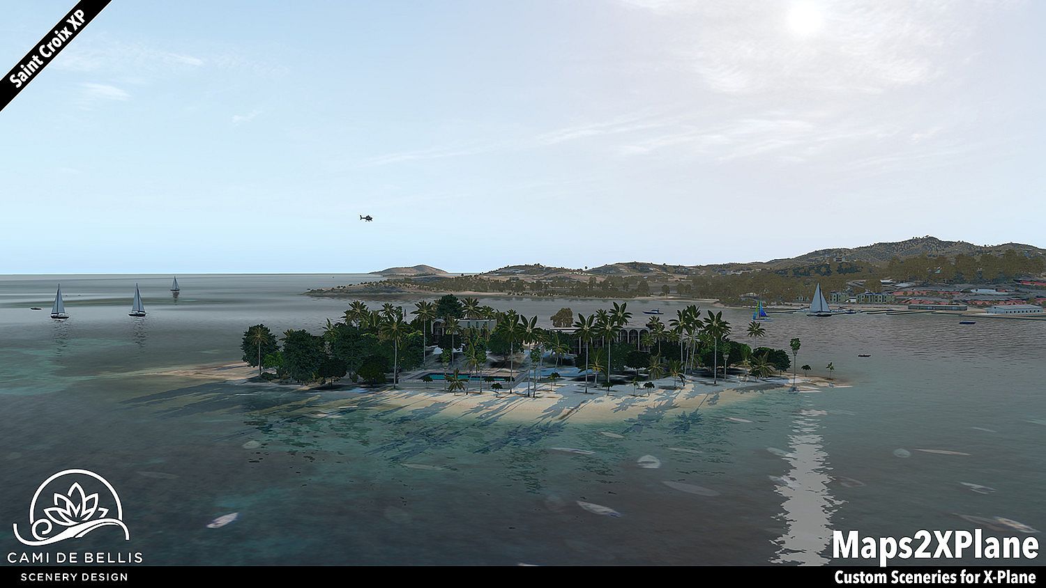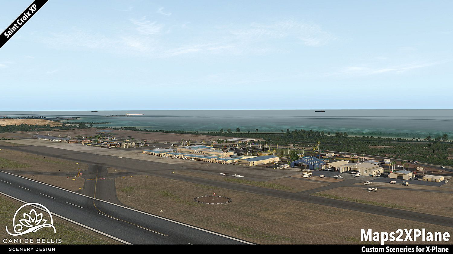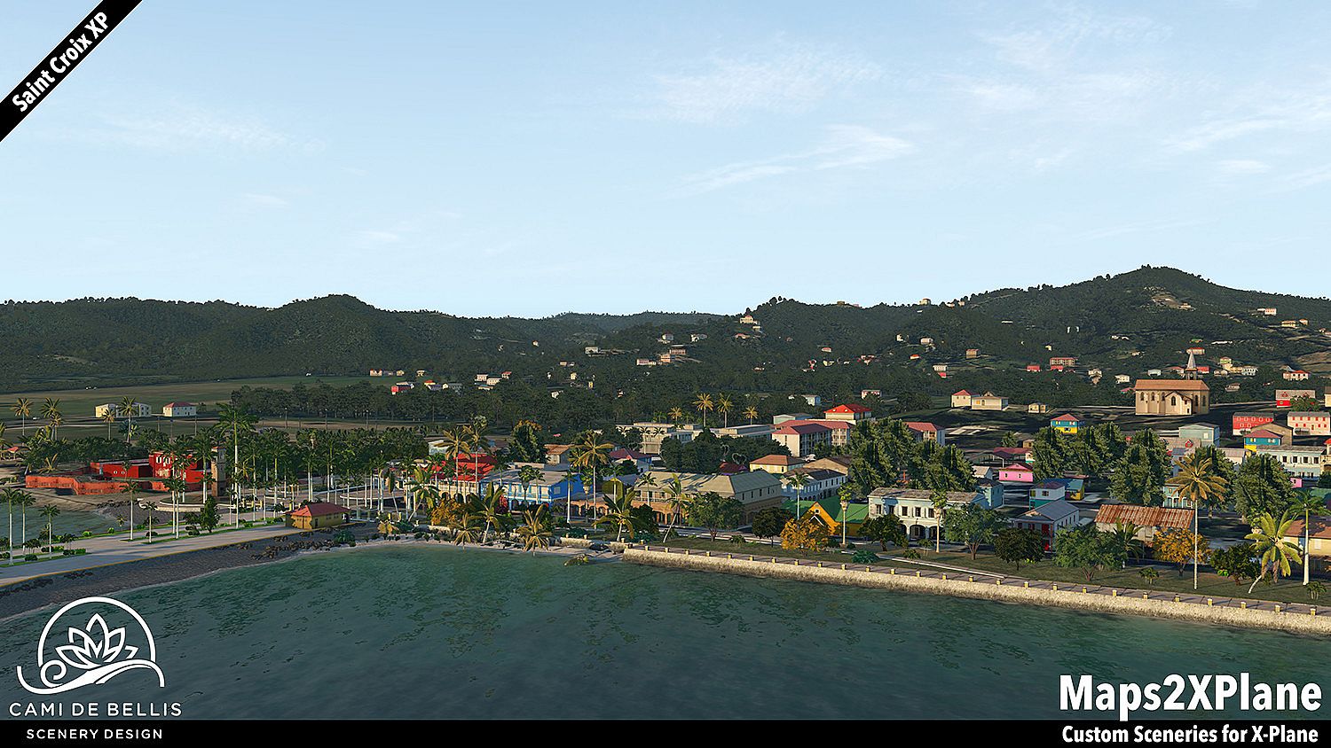 This scenery package for X-Plane 11 features a custom photo-terrain-mesh for the entire island and surrounding islets, with custom overlays (vegetation, road-network and sea-routes with dynamic traffic, autogen buildings) and a highly detailed rendition of the international Henry E. Rohlsen Airport. Renditions of Christiansted and Frederiksted, featuring selected landmarks and including the Seaplane Base, complement the immersive scenery.