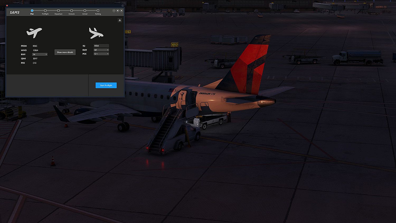 As with the previous extensions, all settings can be tuned via the SAM menu. From here you can also import your flight plan from SimBrief, (as an example) or select a fast-loading option if you want it to happen a little faster.