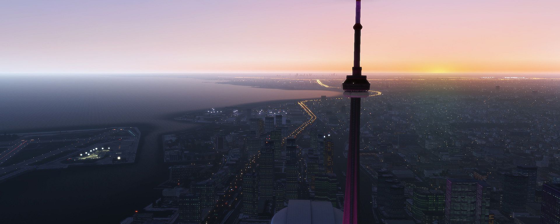 Explore Toronto City with helicopter and fly next to colorful CN-Tower!