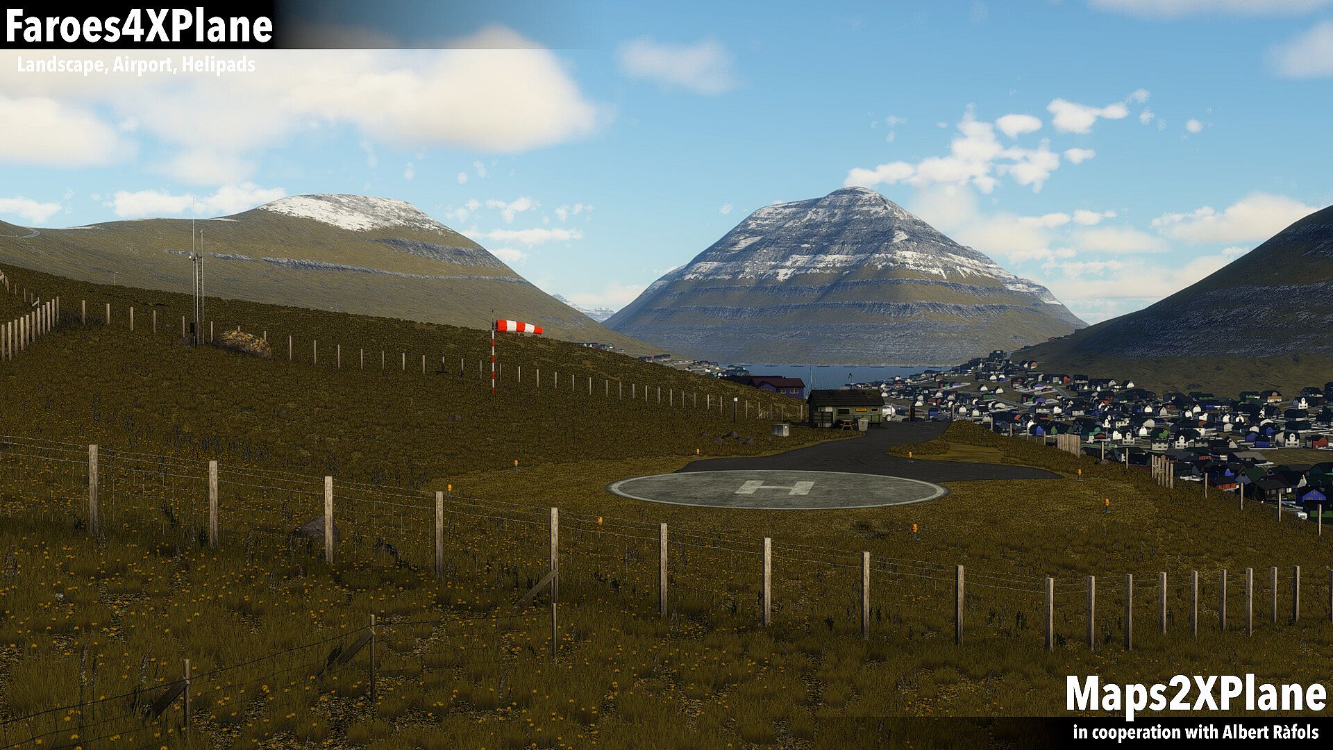 The scenery Faroe Islands XP now recreates the entire archipelago for X-Plane – Maps2XPlane have developed the terrain mesh of Faroes4XPlane, while Albert Ràfols has contributed the airport Vágar and the helipads.
