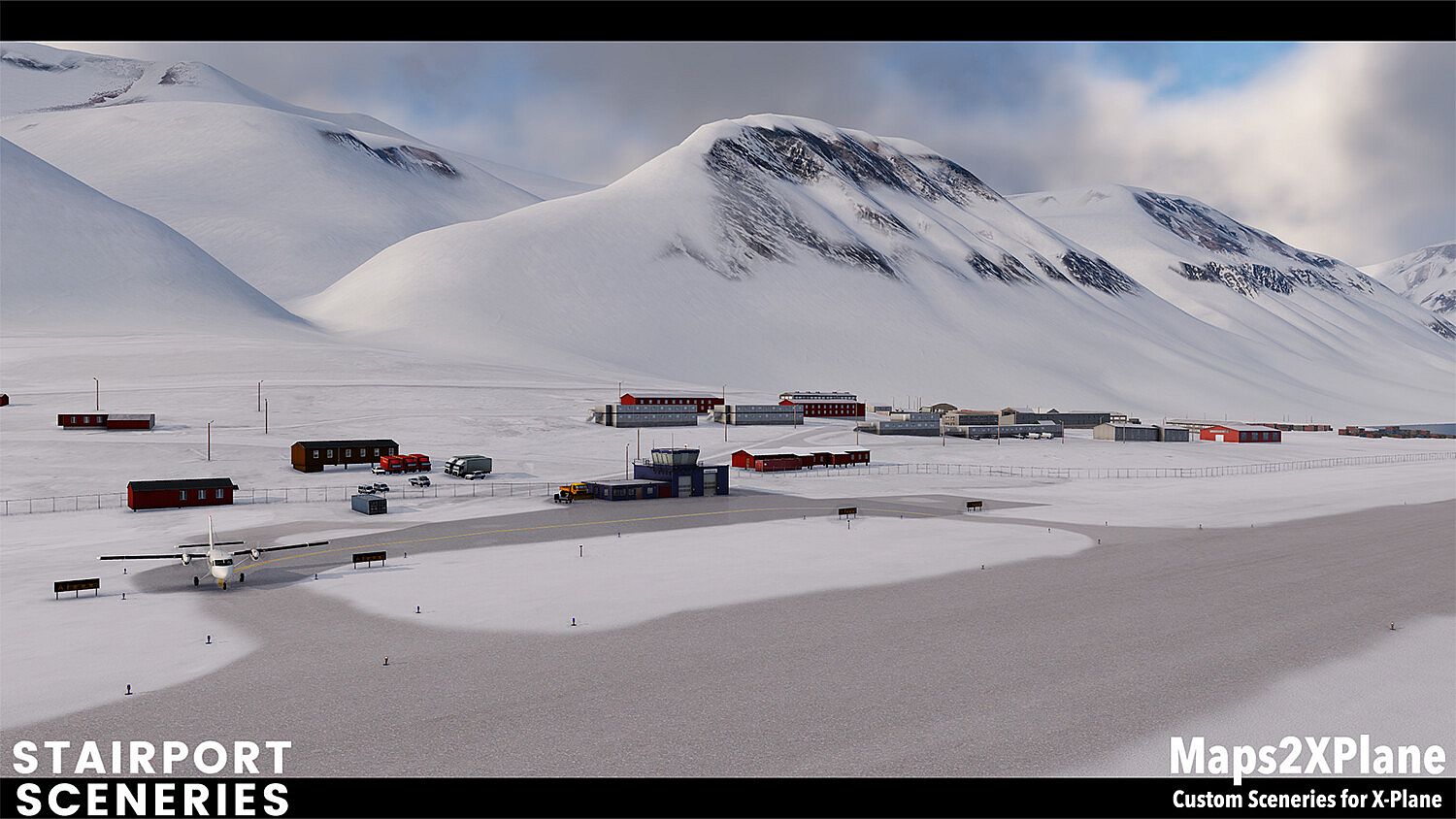 So, the scenery package Svalbard not only fills this gap in the X-Plane landcape but also includes all airports and heliports of this region: Svalbard lufthavn, Longyear (ENSB), Svea (ENSA), Ny Alesund (ENAS), Barentsburg (ENBA) and Pyramiden (ENPY).