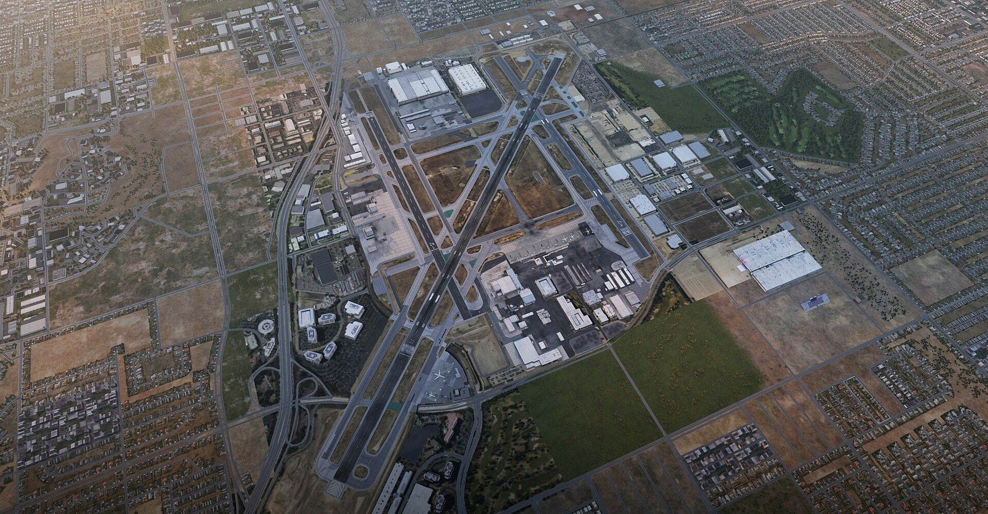 The Boeing Company with the massive maintenance facilities for Boeing and McDonnell Douglas aircraft. The famous Walter Pyramid and the industrial area during approach with thousands of hand-placed objects.