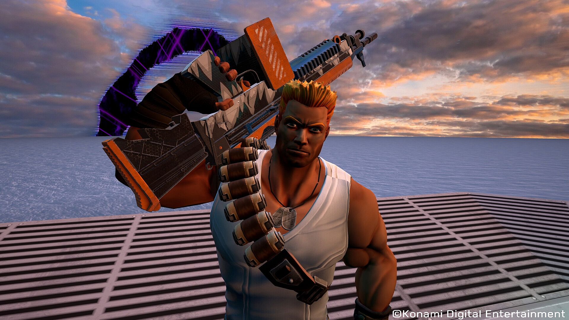 Unlock an exclusive Supreme tier skin for Jaguar ~ the Bill Rizer hero skin, complete with original voice lines and a hero item reskin. This pack also includes two Contra splats and an additional 500 X8 coins to spend in the in-game shop.