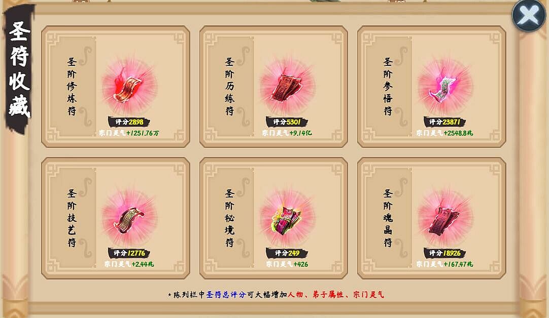 2. Sacred Symbol system: 6 kinds of sacred symbols can be developed for a long time (same as the above function), providing permanent bonus.