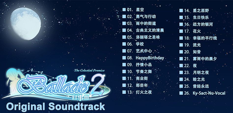 Before you start looking for a cheap 《叙事曲2:星空下的诺言》原声音轨 / Ballade2: the Celestial Promise - Original Soundtrack key, check the essentials. Developed by 286studio. Published by 286studio. PC released date: 13 May 2019. Genres: Indie, RPG, Adventure. Categories: Family Sharing, Single-player, Downloadable Content.