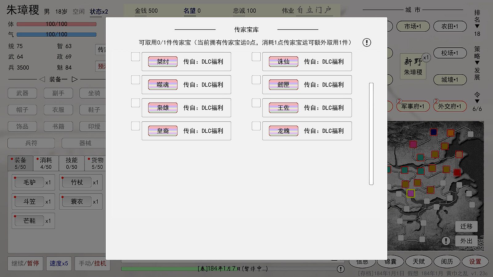 Expand your strategy and RPG gameplay with fresh maps like Wa, Goryeo, and Yizhou, adding eight new cities and historical generals during character creation. Jump into the Dynasty Brawl scenario, where ten factions-Qin, Han, Shu, Wei, Wu, Jin, Tang, Song, Liangshan, and Ming-battle for control of four cities each. Tackle new great deeds such as restoring the Han dynasty by enthroning Emperor Xian or mastering alchemy with a furnace to refine gear, skills, or generals into pills, gods, or demons. Test soldier types in Roguelike bullet-hell tower defense trials at barracks, lasting six minutes for quick rewards like unit fragments. Unlock faction secret techniques over ten years, ease heirloom conditions for one-world unification, and chase the Dynasty Ender finale against a six-faction alliance after total victory. Casual simulation fans who enjoy dynastic conquests and tactical experiments will find ongoing updates keep sessions replayable.