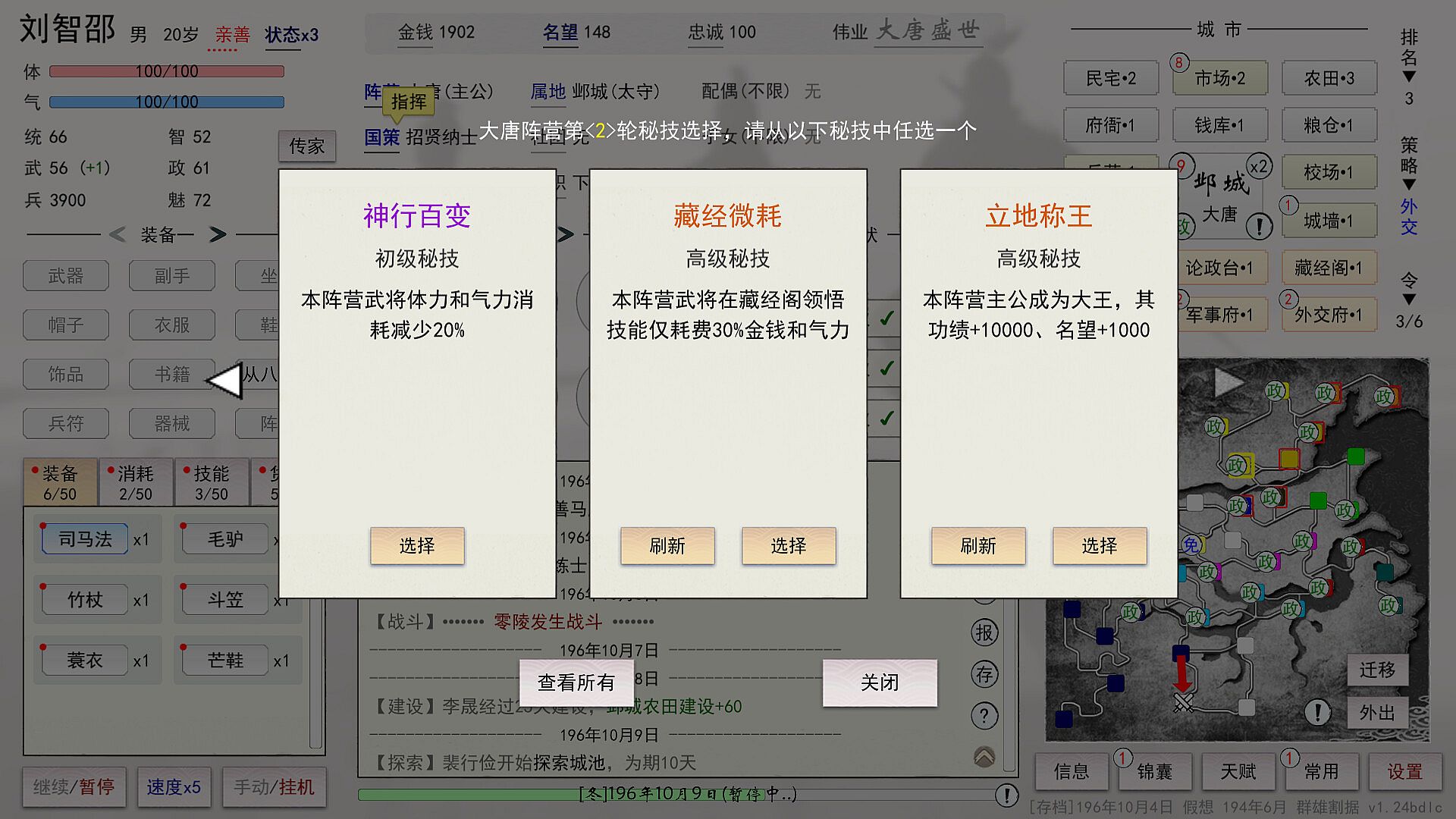 阵营秘技:所有阵营在自身创建后的第1/2/4/6/8/10年时分别可以学到1个秘技,每次从随机的3个秘技中任选1个。