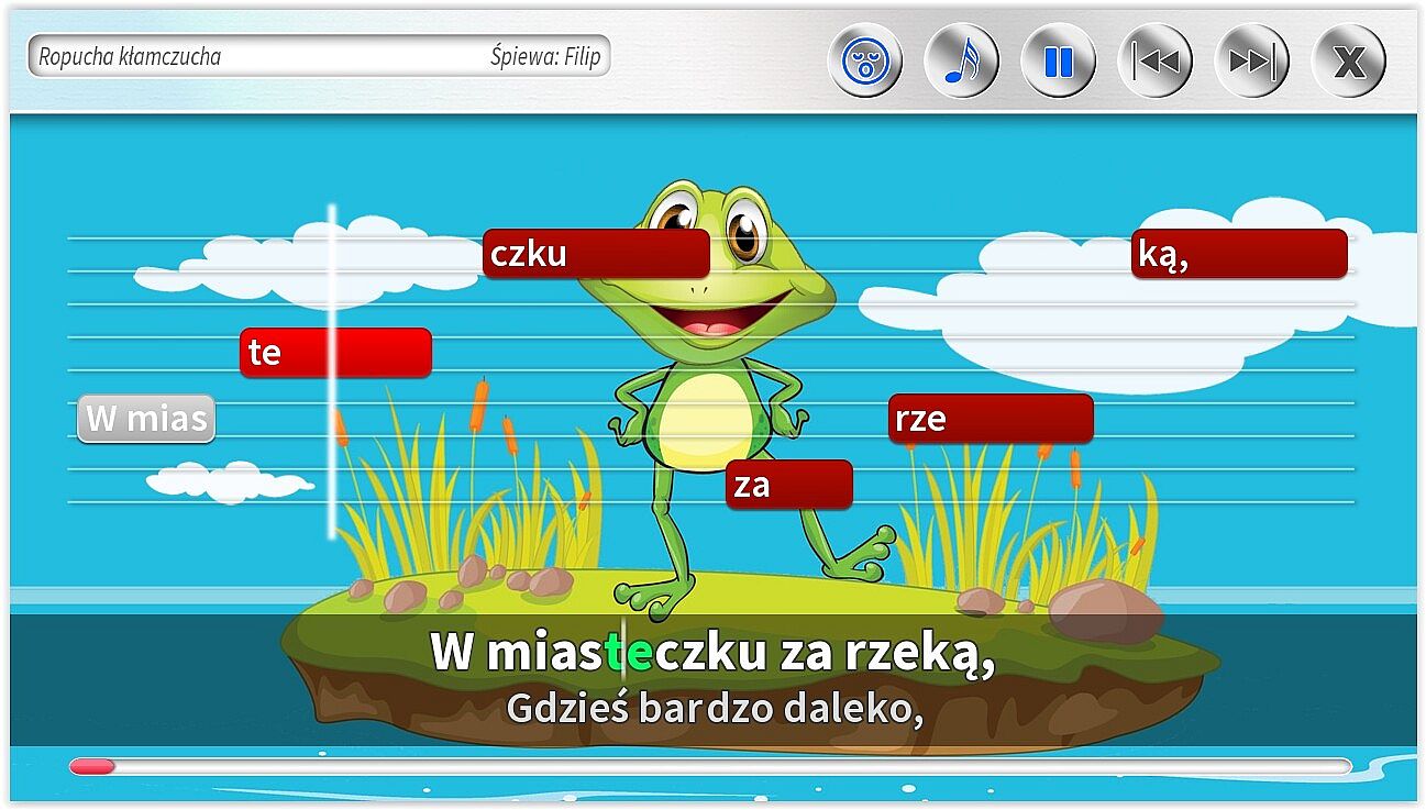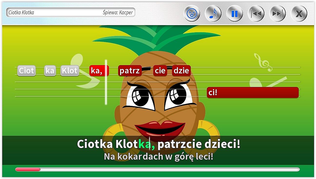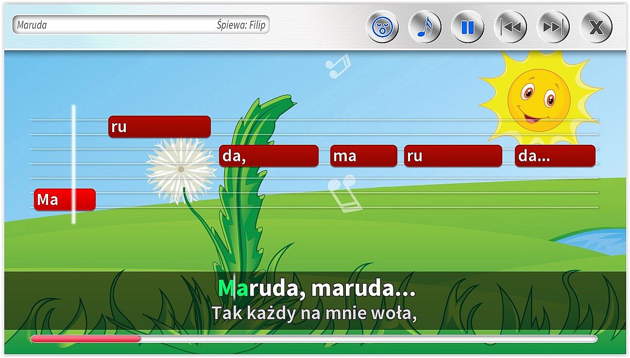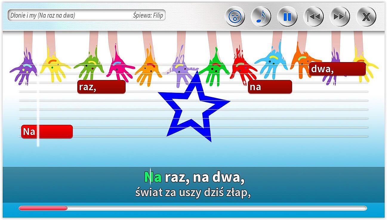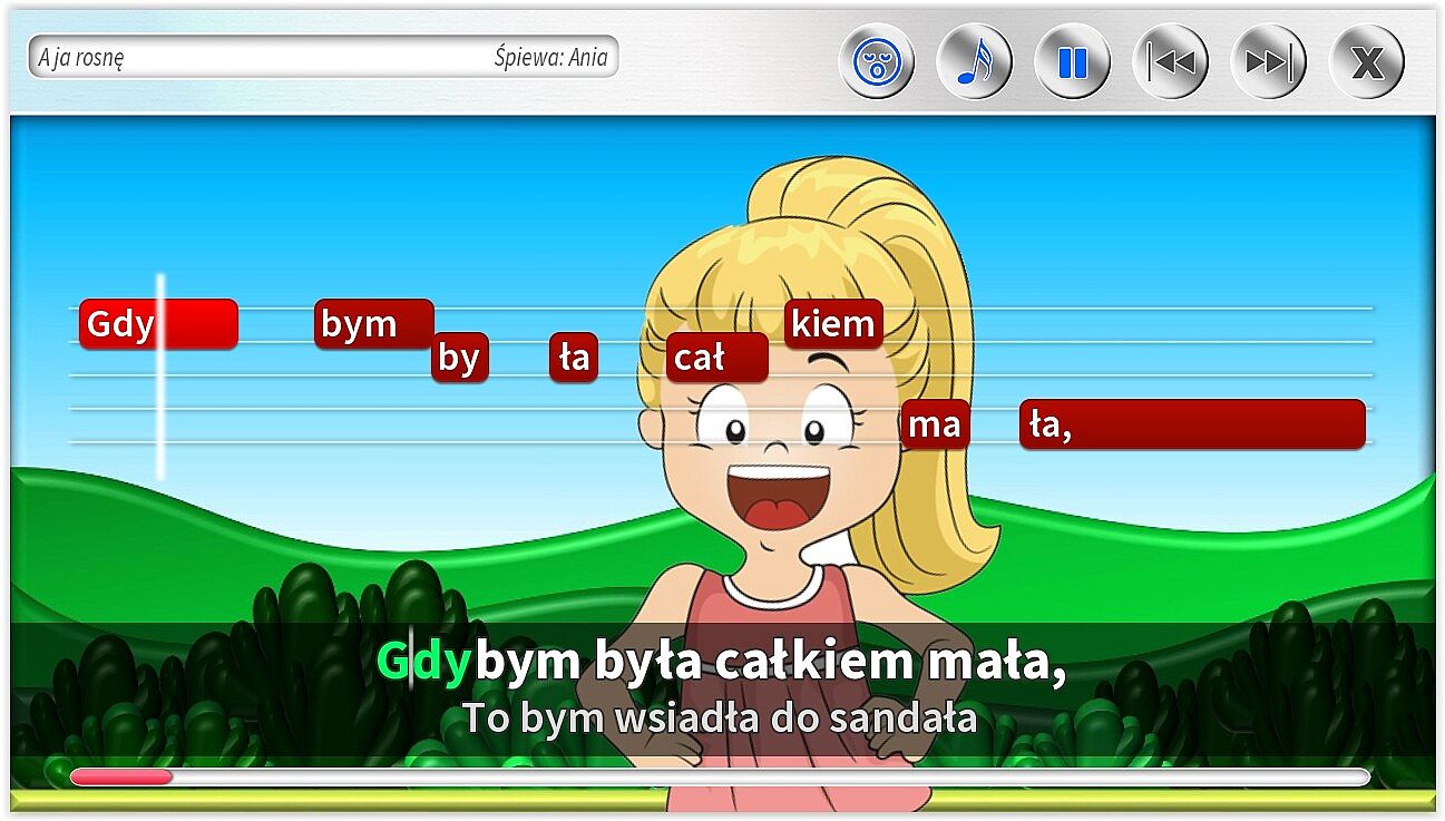 • Dodatkowe ścieżki wokalne pomagające śpiewać najmłodszym. Specjalnie dla dzieci jeszcze nieumiejących czytać, możliwość śpiewania z gotowymi podpowiedziami śpiewanymi.