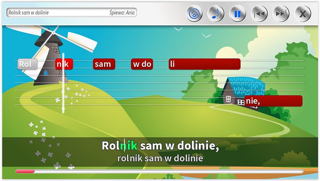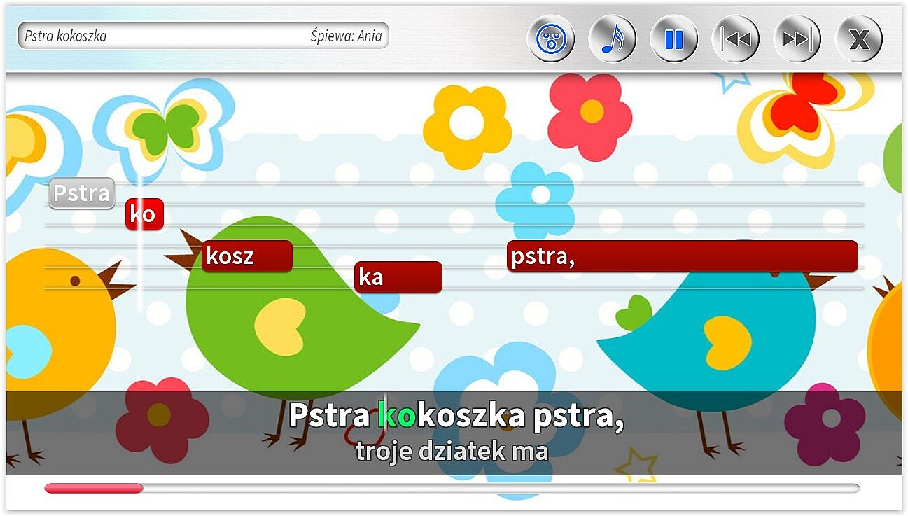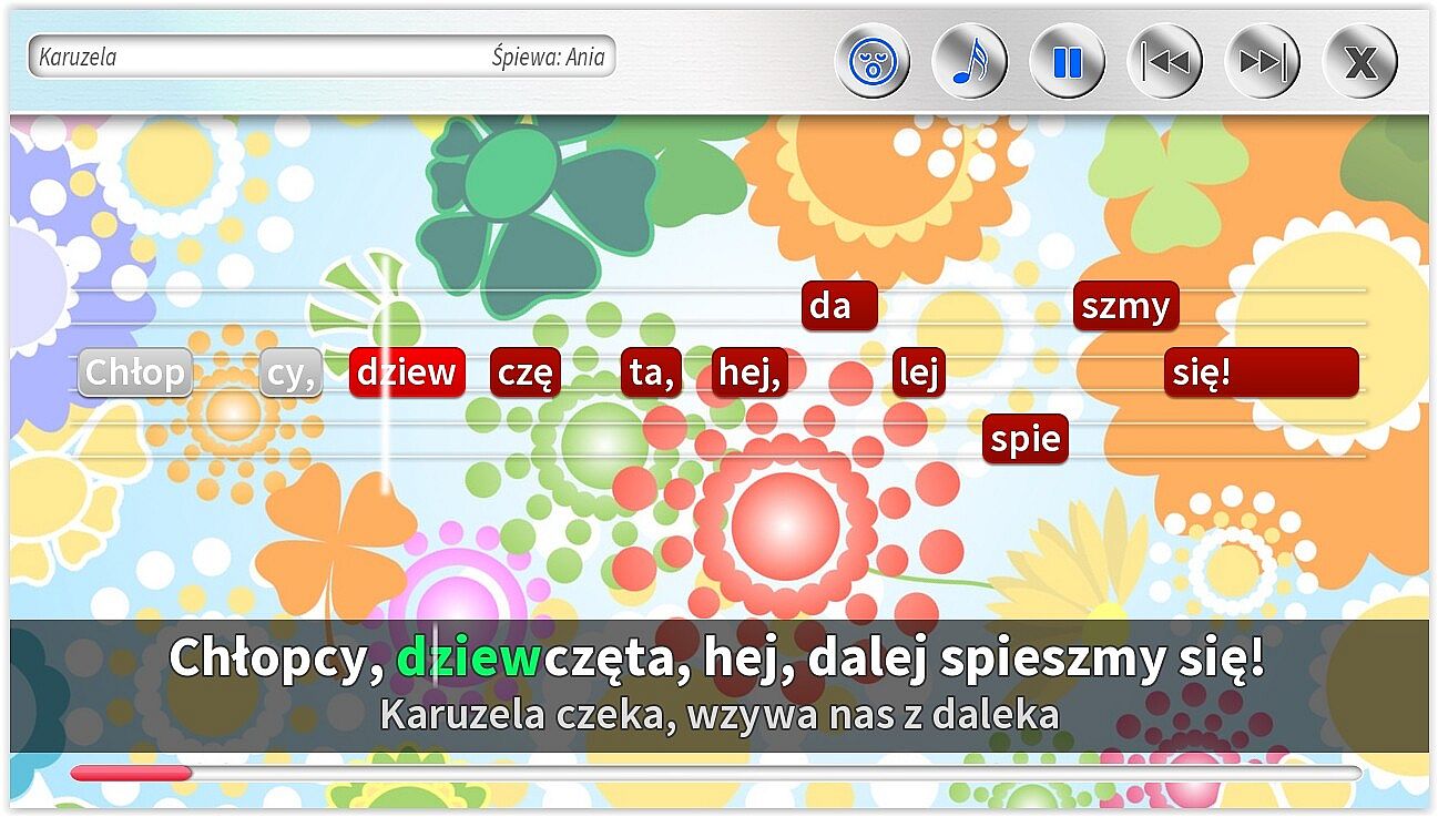 • Dodatkowe ścieżki wokalne pomagające śpiewać najmłodszym. Specjalnie dla dzieci jeszcze nieumiejących czytać, możliwość śpiewania z gotowym podkładem wokalnym.