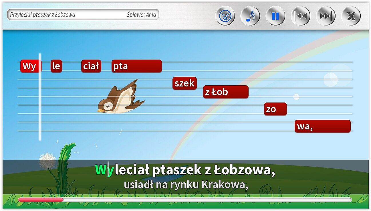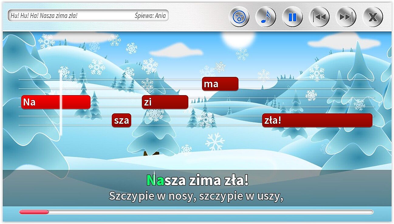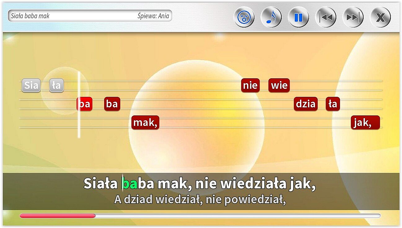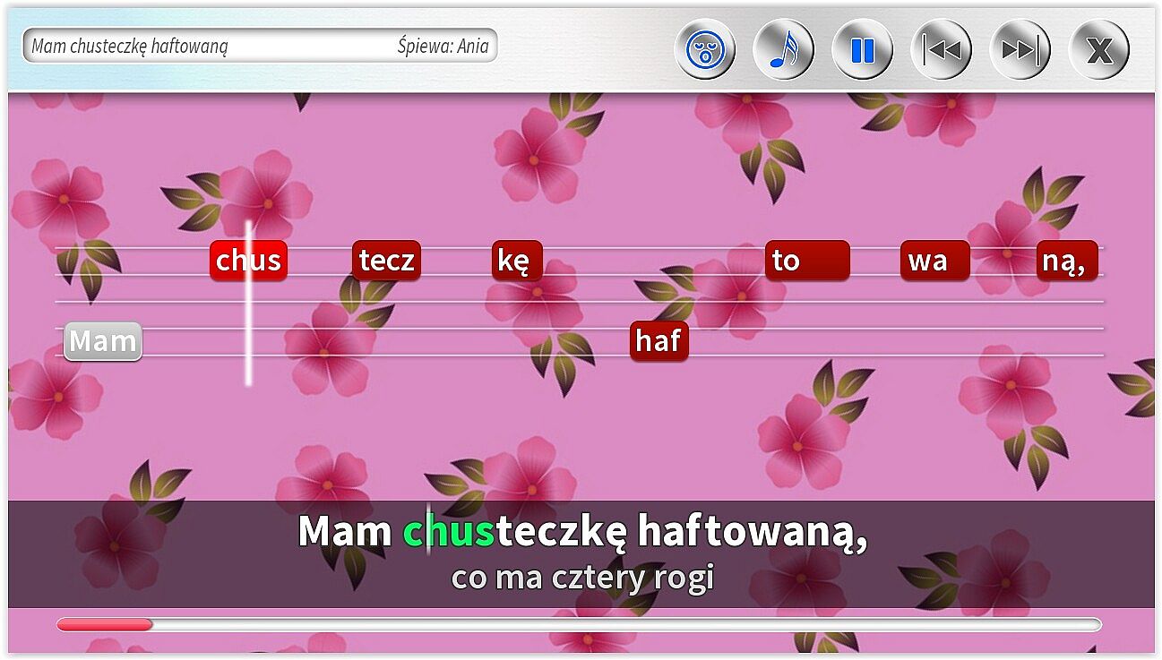 • Dodatkowe ścieżki wokalne pomagające śpiewać najmłodszym. Specjalnie dla dzieci jeszcze nieumiejących czytać, możliwość śpiewania z gotowym podkładem wokalnym.