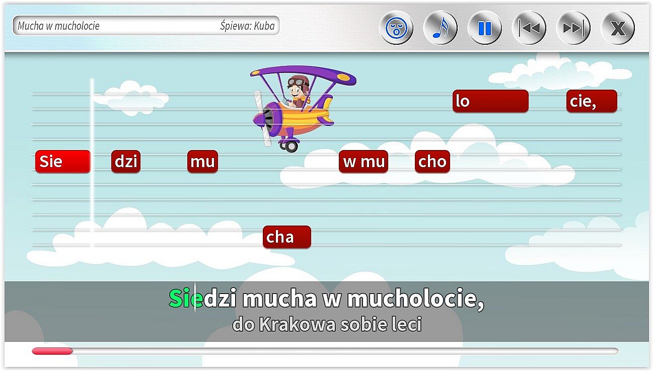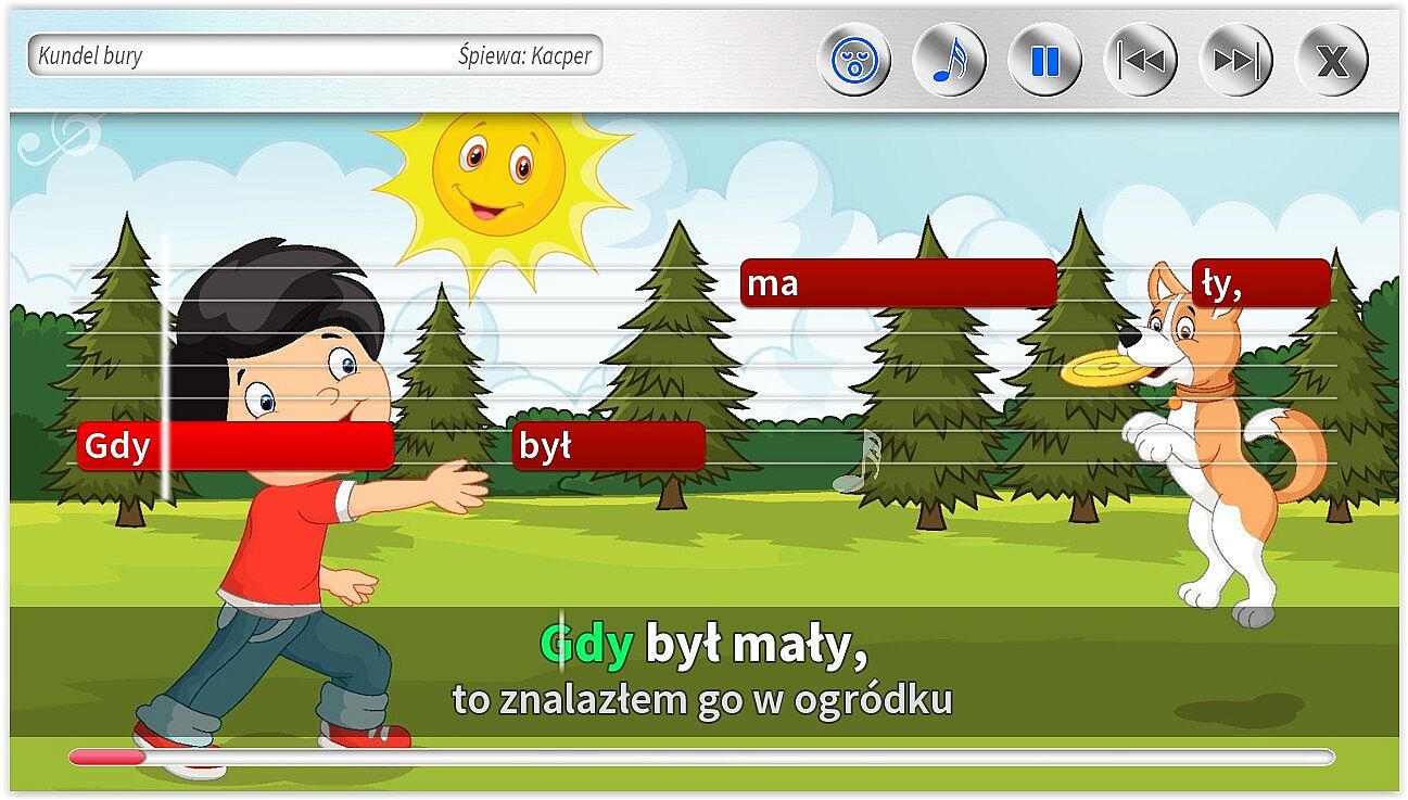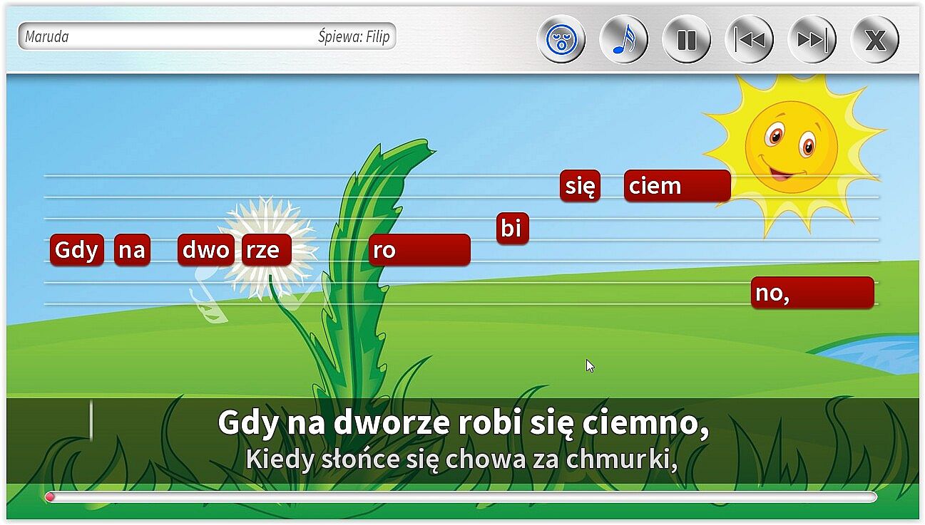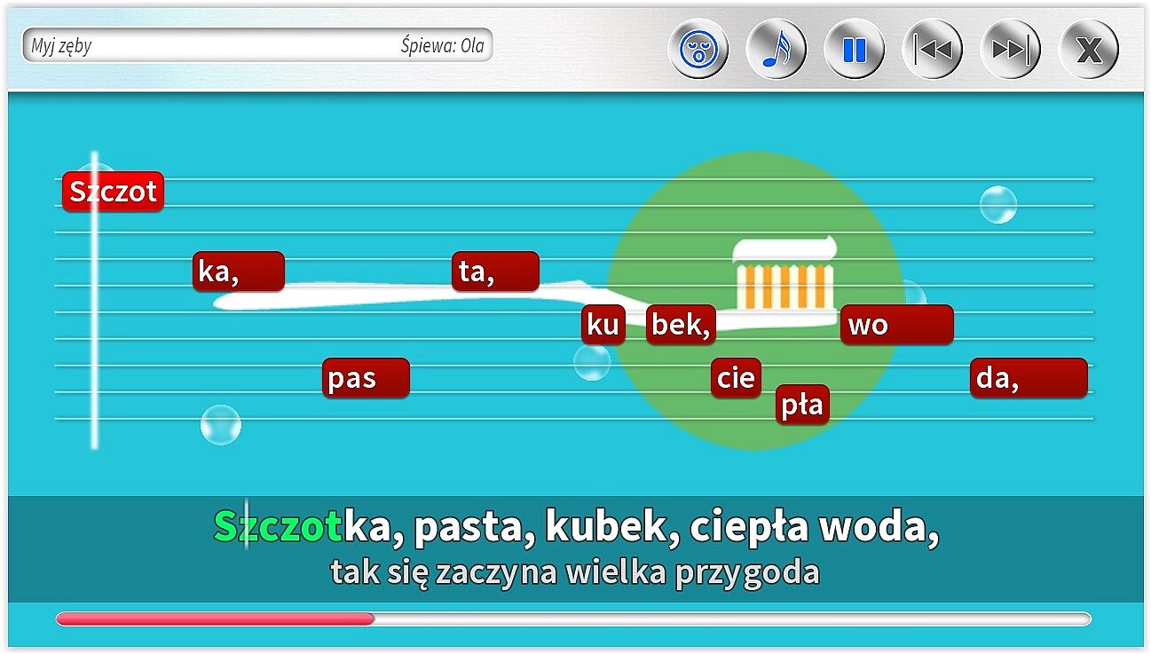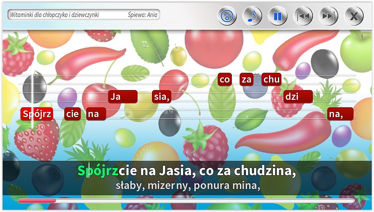 - Dodatkowe ścieżki wokalne pomagające śpiewać najmłodszym. Specjalnie dla dzieci jeszcze nieumiejących czytać, możliwość śpiewania z gotowym podkładem wokalnym.