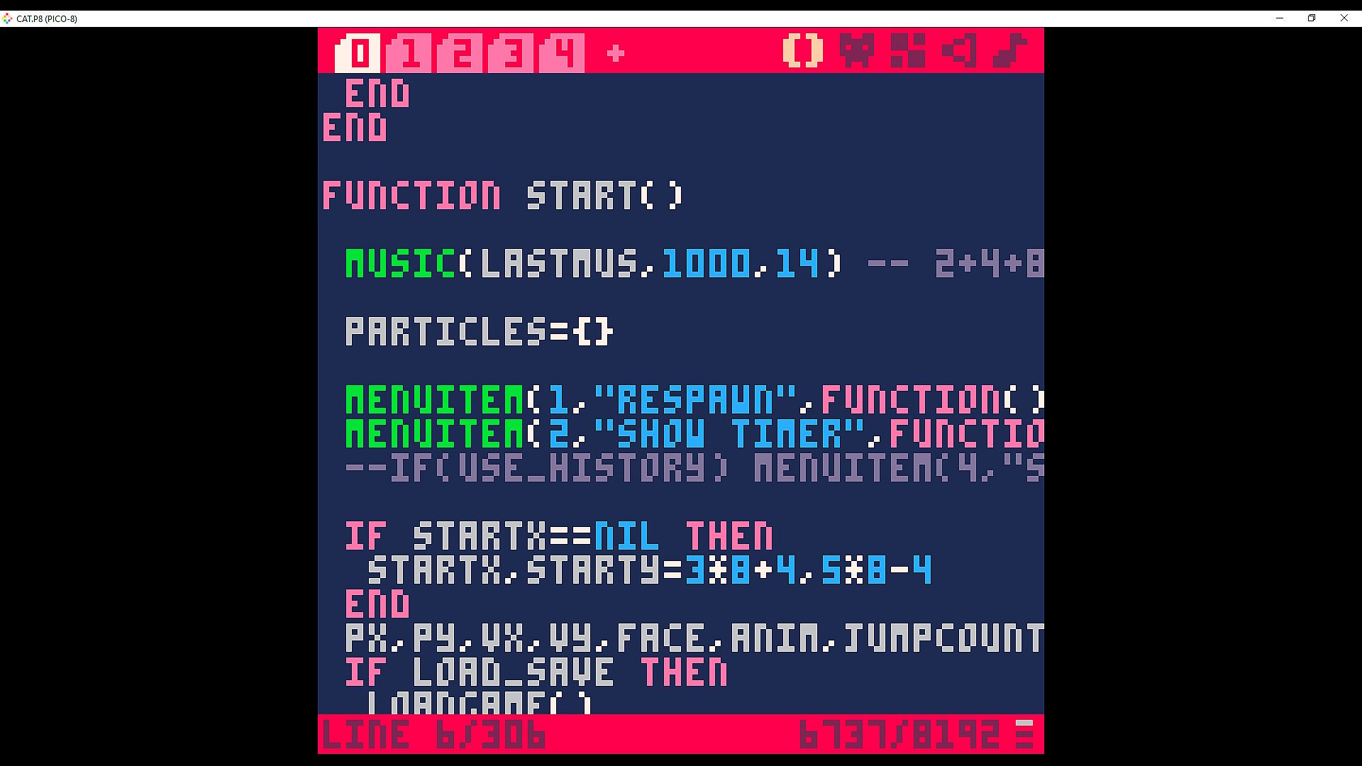 • Change the level of the game using a tiny custom level editor made in Pico 8 itself
