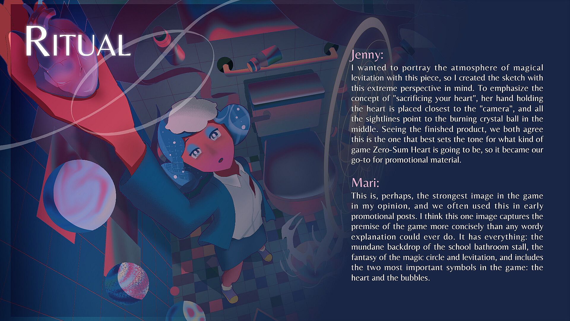 Find Zero-Sum Heart in the Steam library, right-click, select "Properties" and choose "find local game files", and you should see the "ZSH_Artbook" pdf in the folder! Or alternatively, you can find it manually at [Your Steam Library Folder]/steamapps/common/Zero-Sum Heart.