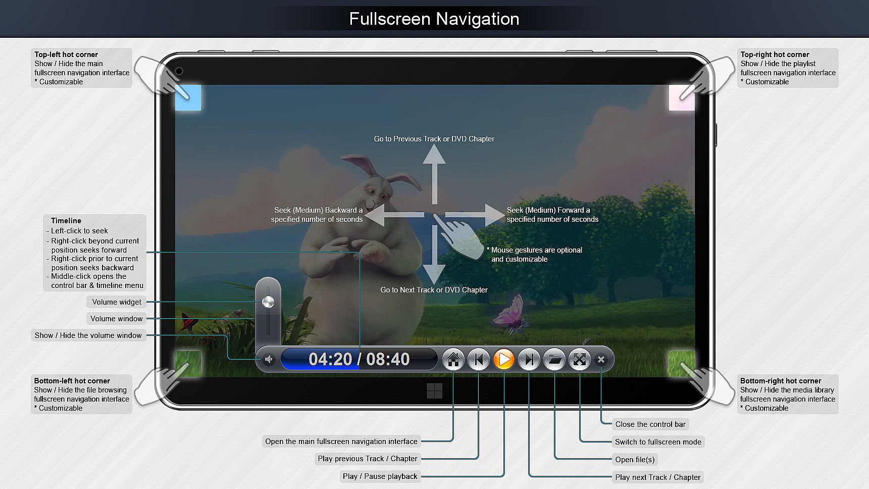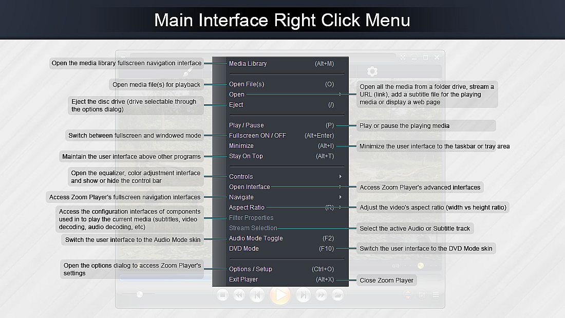 • To ensure Zoom Player feel more intuitive, many user-experience tweaks were made throughout ZP's interfaces.