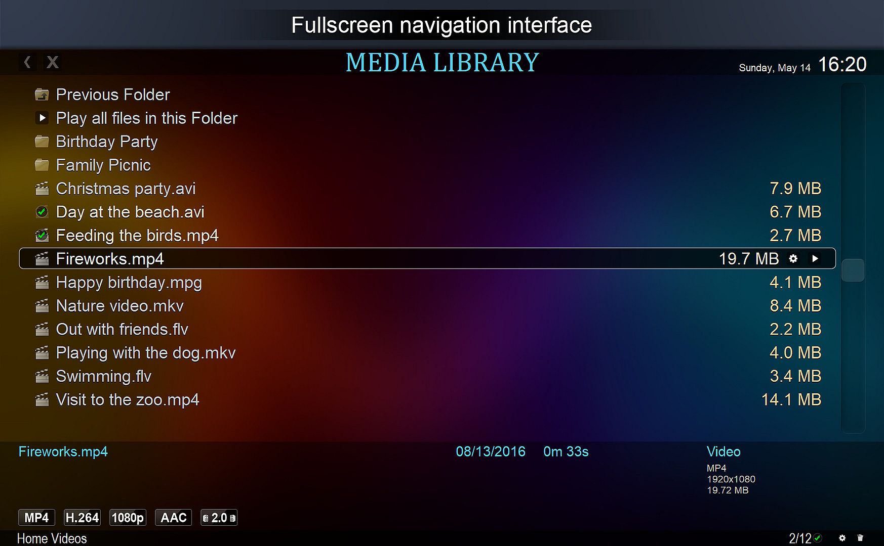 • Media library play position bar on icons feature.