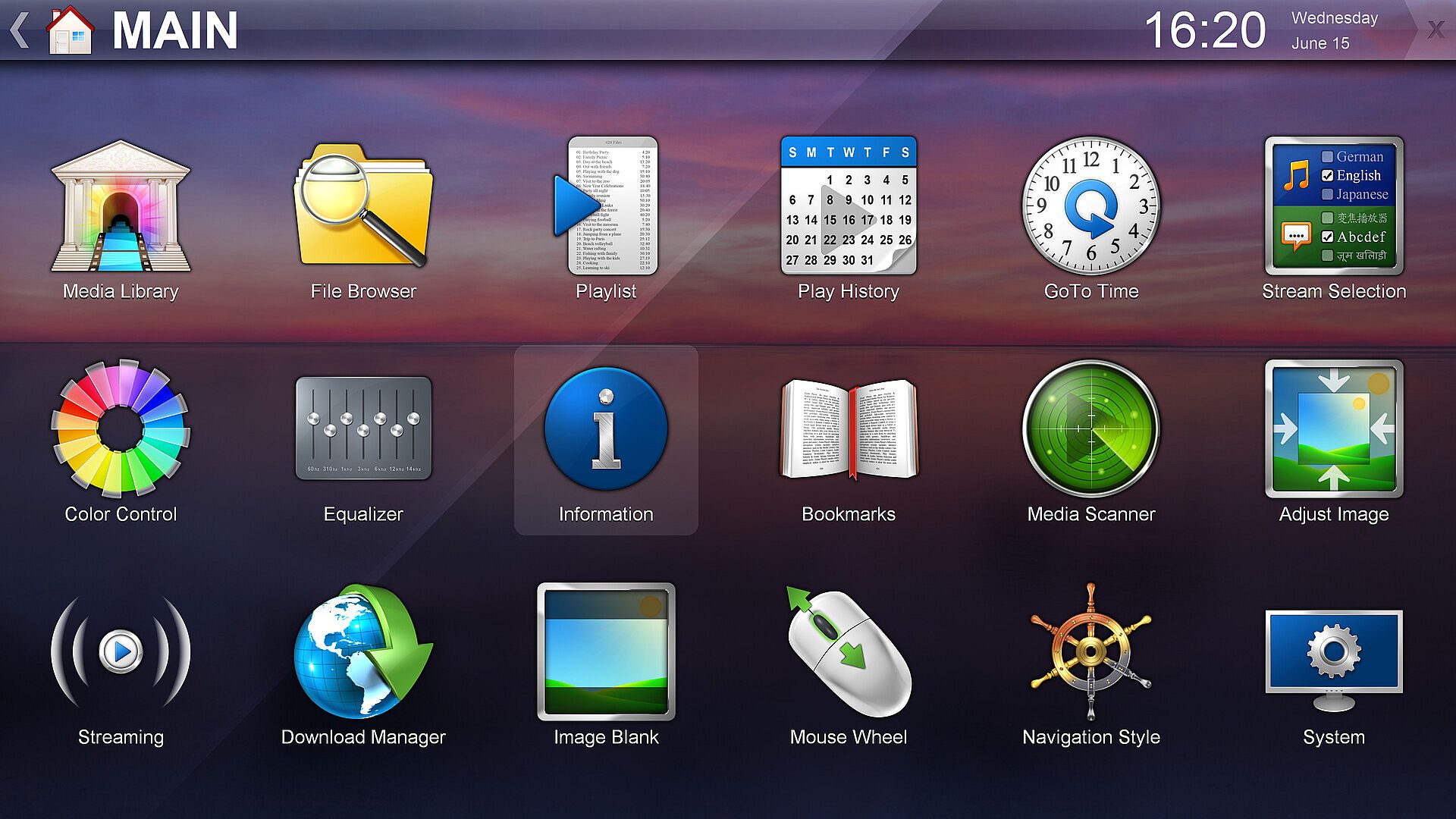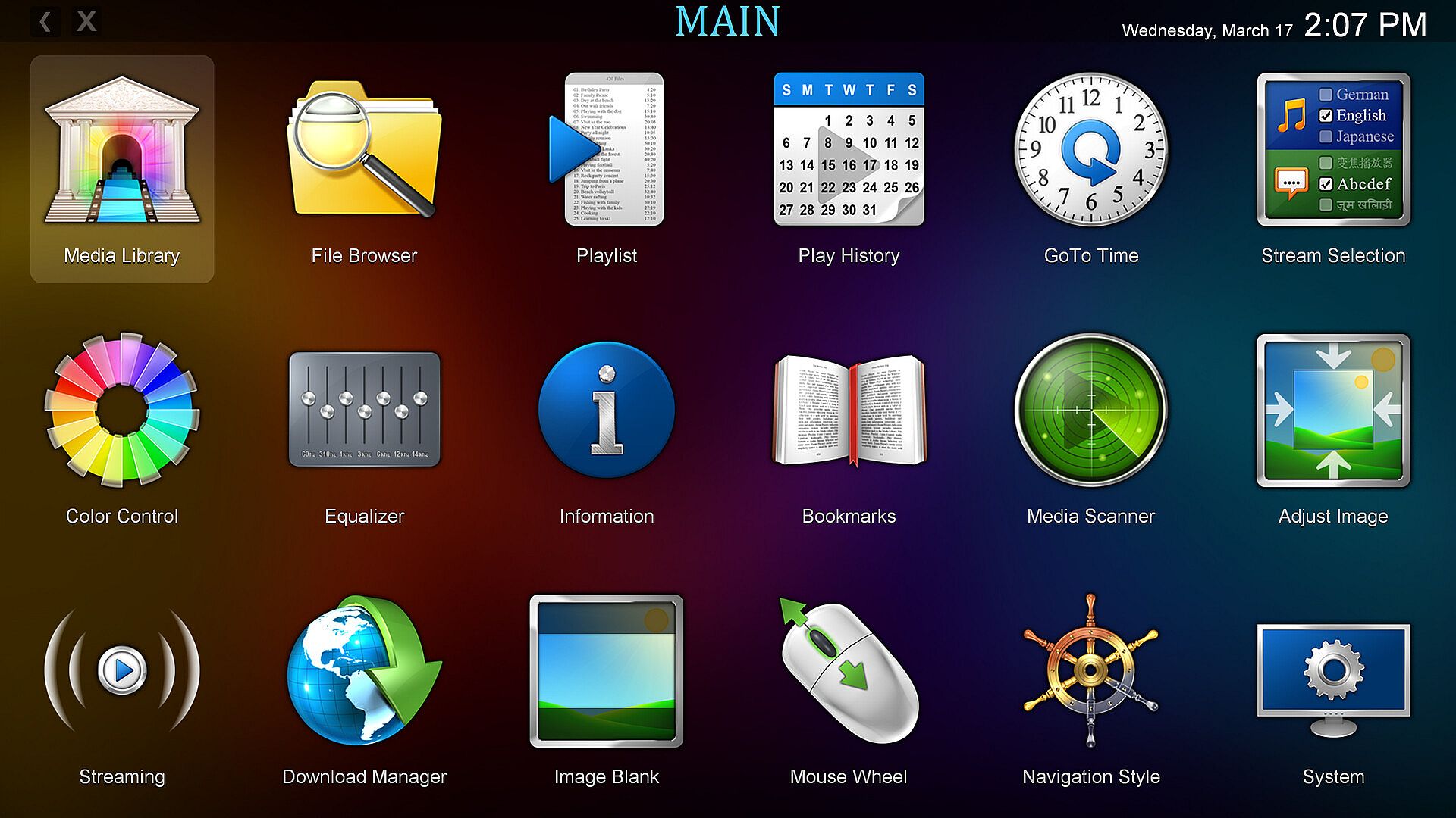 Zoom Player's fullscreen navigation skins designed for 4K screens. This includes: