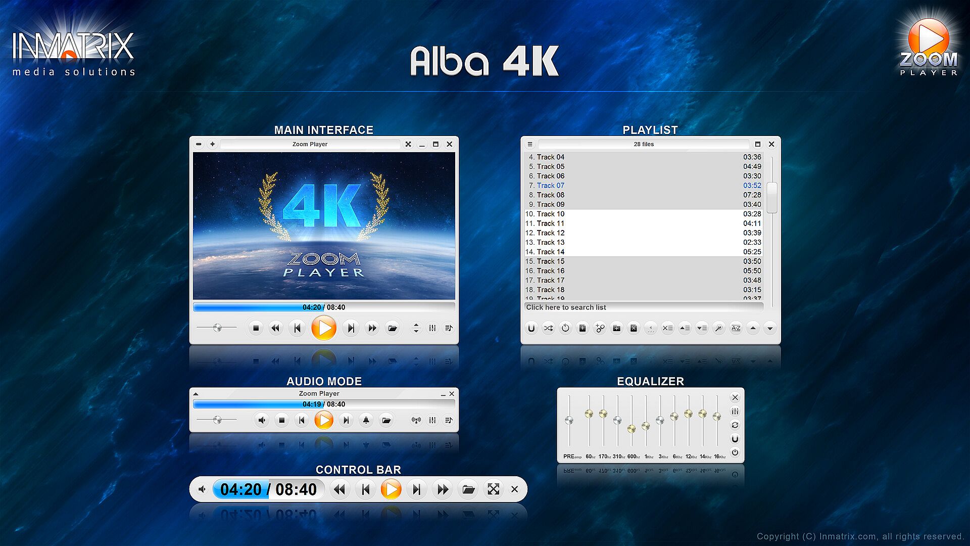 Zoom Player's GUI skins designed for 4K and 8K screens. This includes: