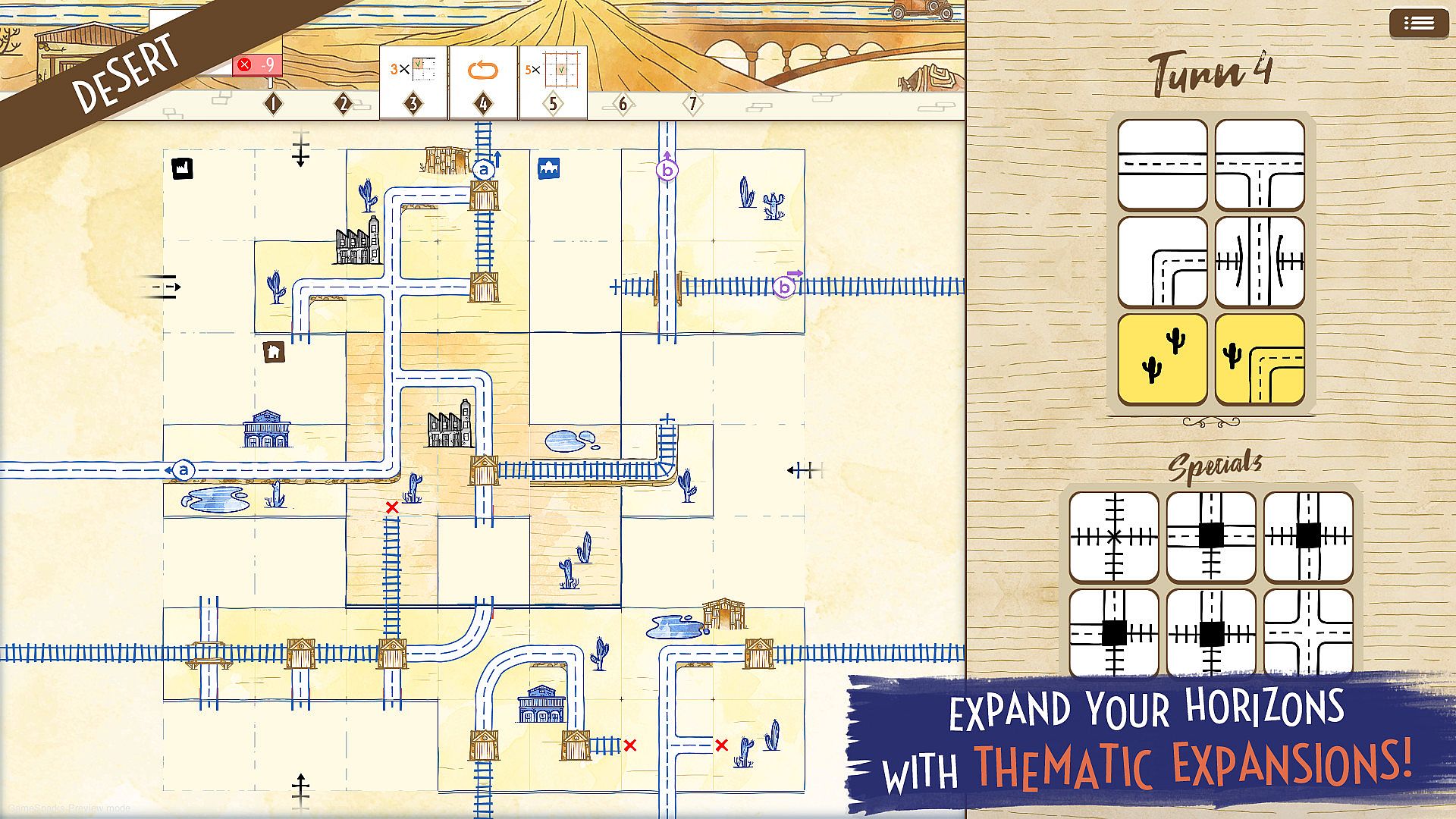 Antes de buscar una clave barata de Railroad Ink Challenge – Desert, revisa lo esencial. Desarrollado por Horrible Guild. Publicado por Horrible Guild. Fecha de lanzamiento en PC: 28 ene 2022. Géneros: Strategy, Casual. Categorías: Multi-player, PvP, Online PvP, Family Sharing, Single-player, Downloadable Content, Cross-Platform Multiplayer, Steam Achievements.