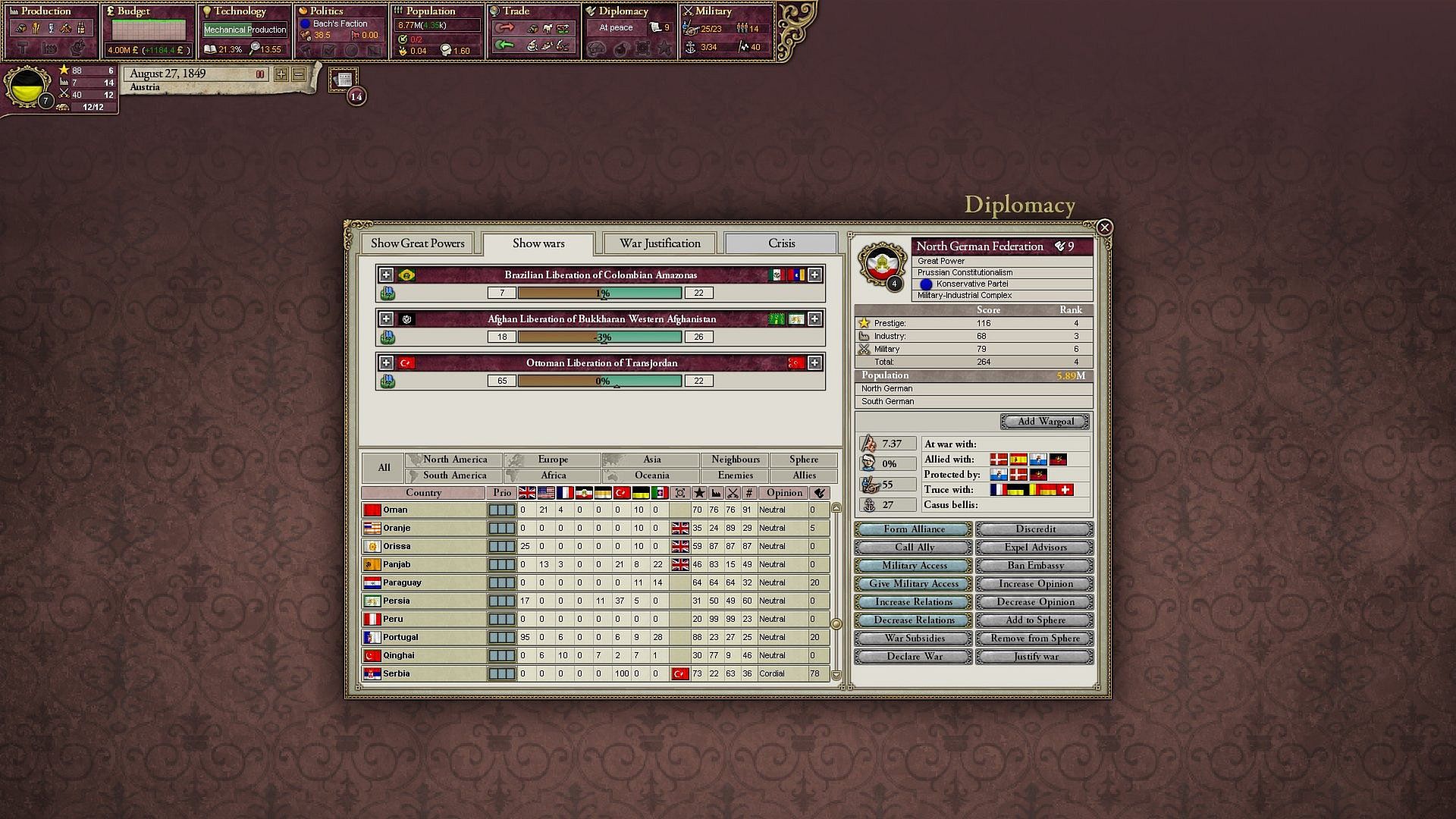 • Prepare for International Crises: Around the world international crises continually call on the Great Powers to mediate and compromise, with war always being the last resort. As one of the lesser powers, use your influence to stir up local flash points so you can use fleet footed diplomacy to get the Great Powers to right the wrongs that have been committed against your nation!
