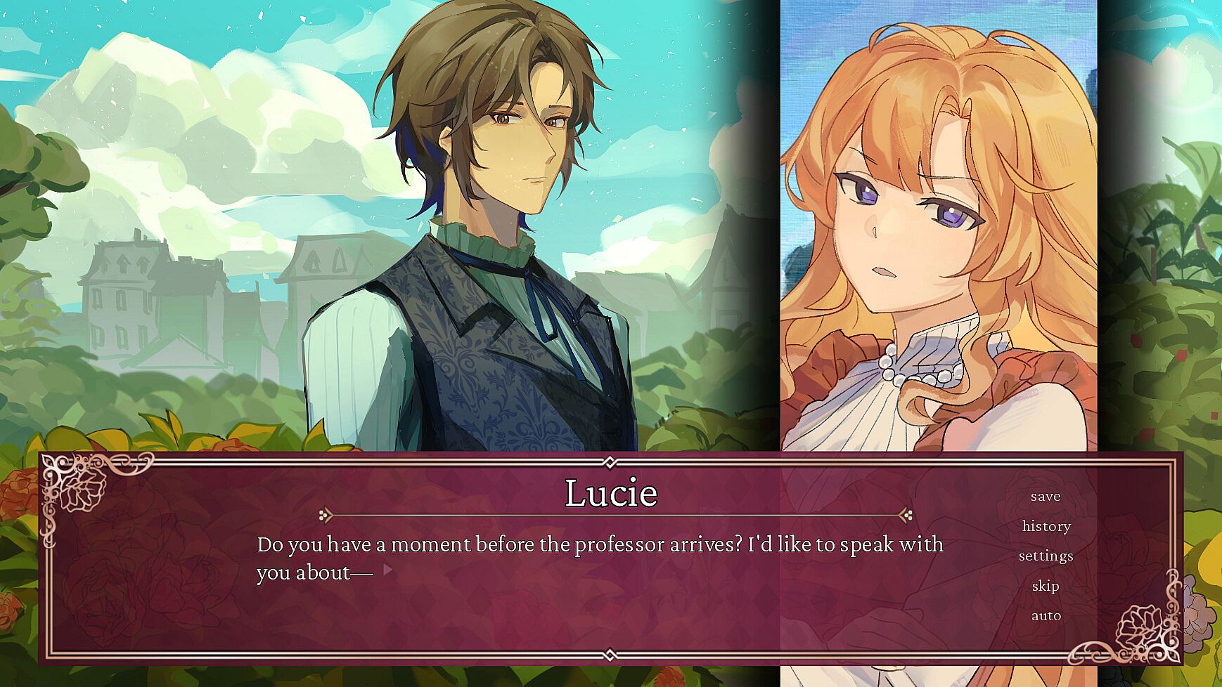 Crimson Waves on the Emerald Sea: Amaranthine Moon is the otome standalone sequel to Crimson Waves on the Emerald Sea, a Victorian vampire visual novel previously released in 2021. This visual novel is set around 5-6 years after the events of the first visual novel, following Lucie as the main character now that she's an adult.
