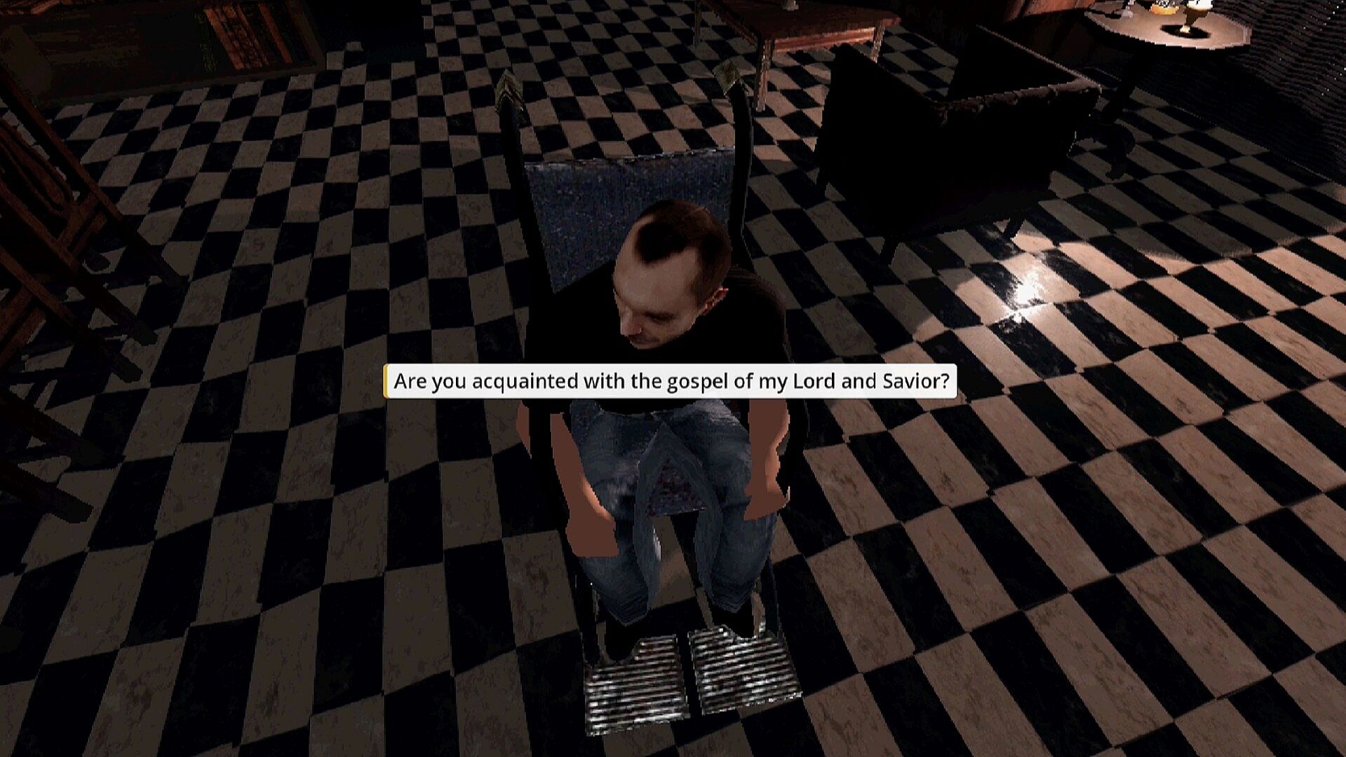 As a missionary, you go to spread your message to a wicked man. He, however, wants to play a card game with you.