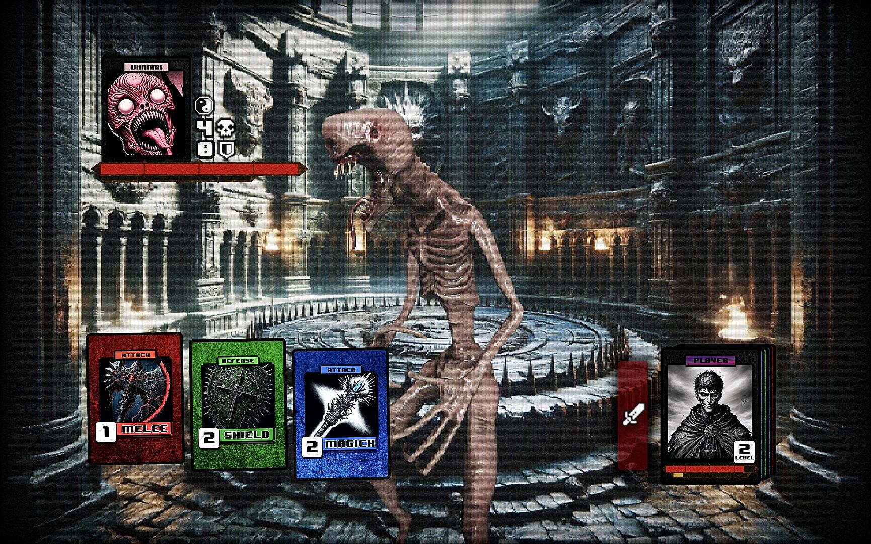 • Intense Card Battles: Rely on luck and strategy to barely survive fierce battles and acquire new cards to beat the Wicked Man's game.