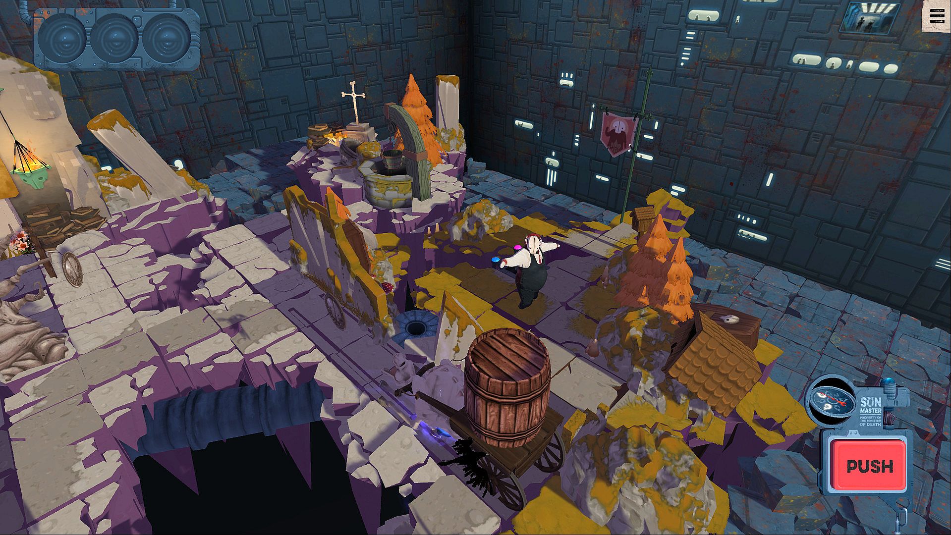 The end goal of each level is to set up your targets and have them meet their maker.