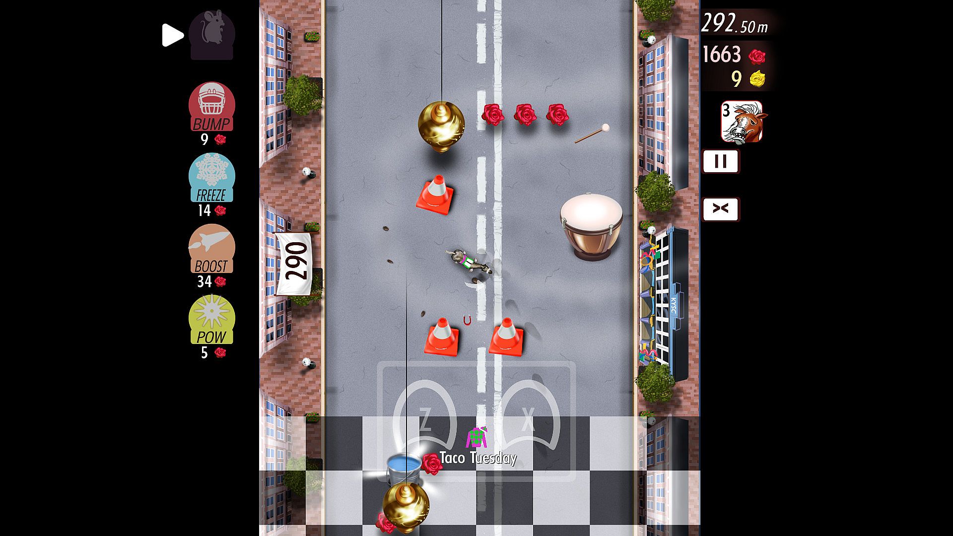 * Dodge'Em Up: Avoid barrels, spotlights, turtles, cars, drums, pendulums, bikers, police, and even pinball paddles!