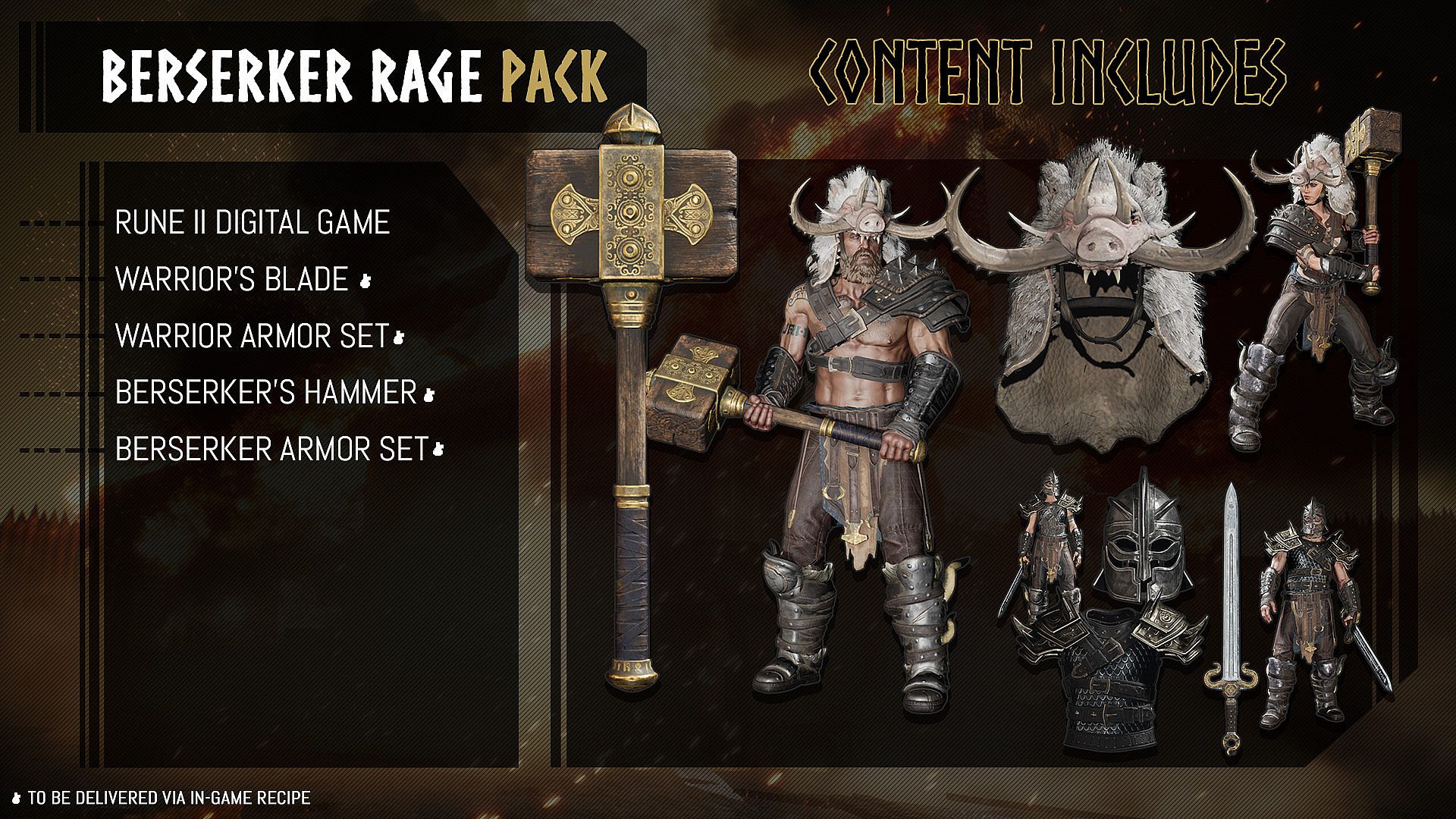 The RUNE II: Berserker Upgrade Pack includes in-game RECIPES for: