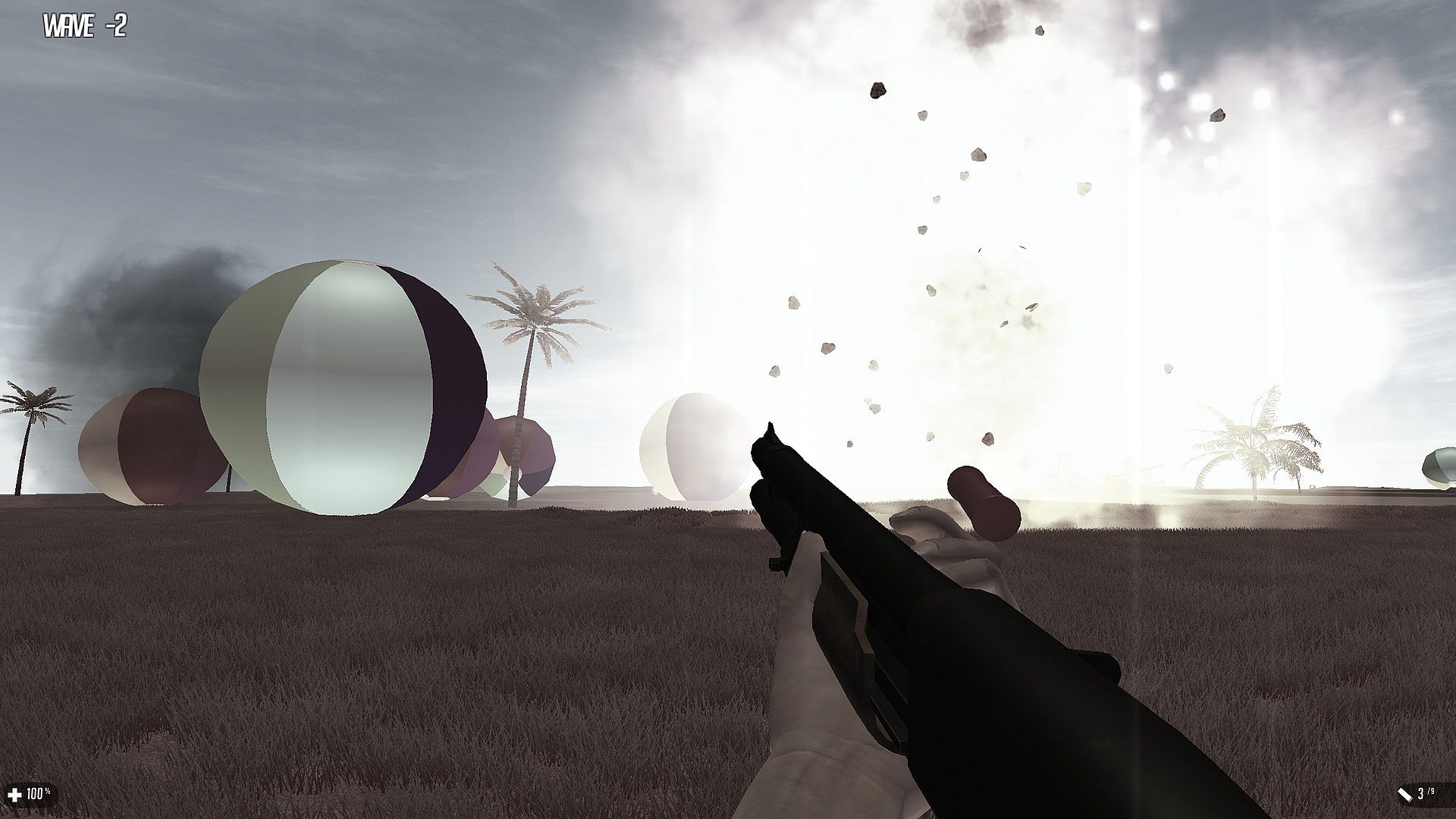 Imagine being stranded on an island in the early 1900's, being a only survivor in a experimental plane crash. However, the island you crashed on is not a normal island, its Boom Island! Engage yourself in this arcade style first person shooter, where the main objective is to shoot highly explosive bouncing beach balls while staying alive. Immerse yourself with vintage effects and arcade style gameplay.