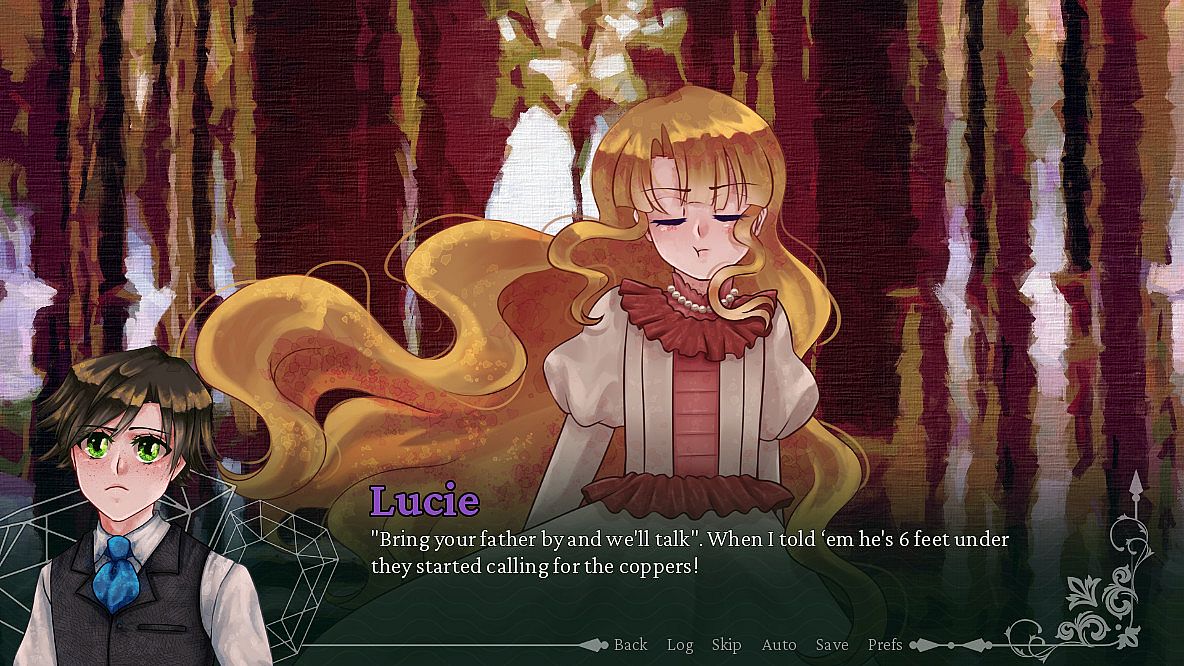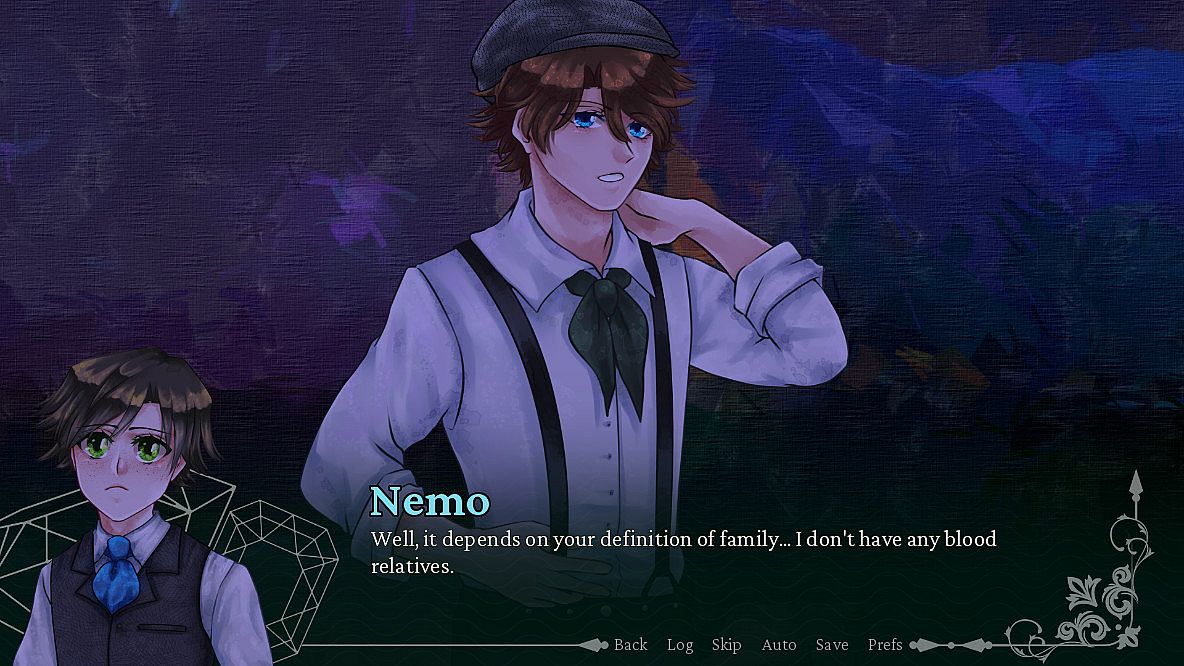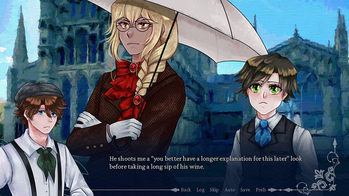 Crimson Waves on the Emerald Sea is a Victorian-esque character drama visual novel revolving around 4 characters who become entangled in solving an unsolved massacre by a vampire.