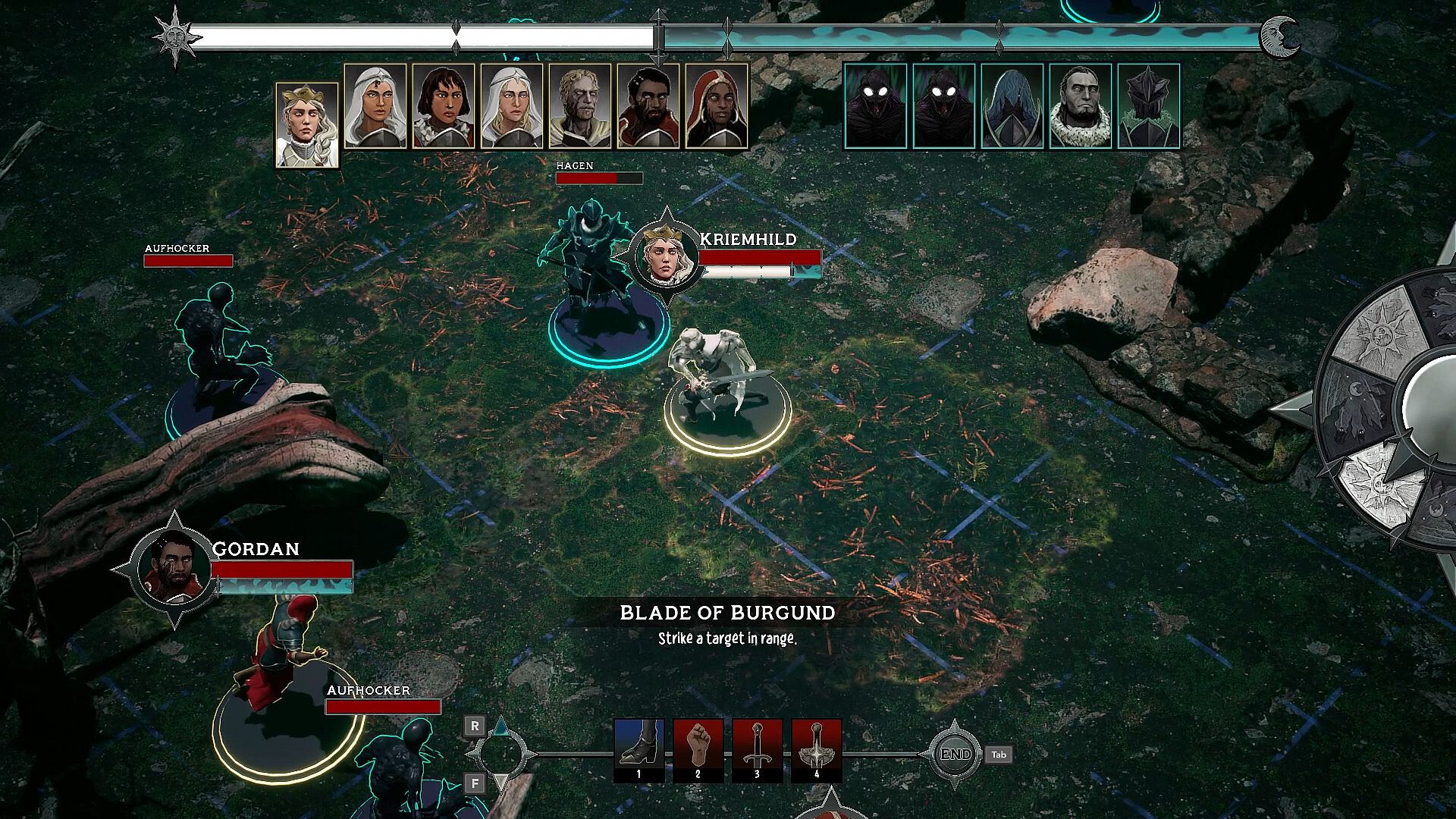 Devise your path through a series of battles which are periodically affected by the Veil, a magical world state that strengthens dark magic and unlocks additional abilities. Your battle strategy and selected actions will affect your allies' affinity towards light or darkness and influence the state of the world. A fighter who exploits the dark magic of the Anderswelt will be stronger but more susceptible to losing their mind, a risky gamble since the creatures of the Anderswelt will try to assimilate every knight into their own ranks as soon as the Veil takes effect.