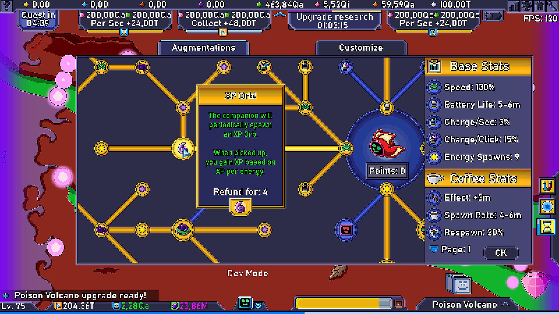 • Several progression systems: Energy levels, player level, Hub upgrades, field upgrades, companion augmentations and power ups.