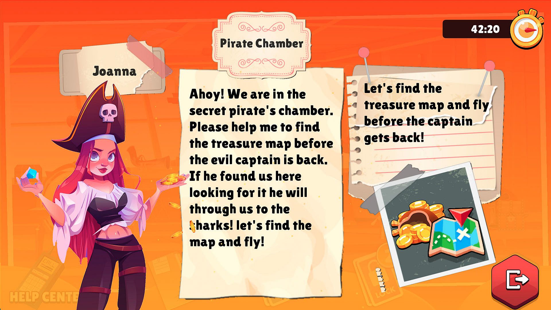 - The Pirate Chamber: Let´s find the captain pirate treasure before he is back!