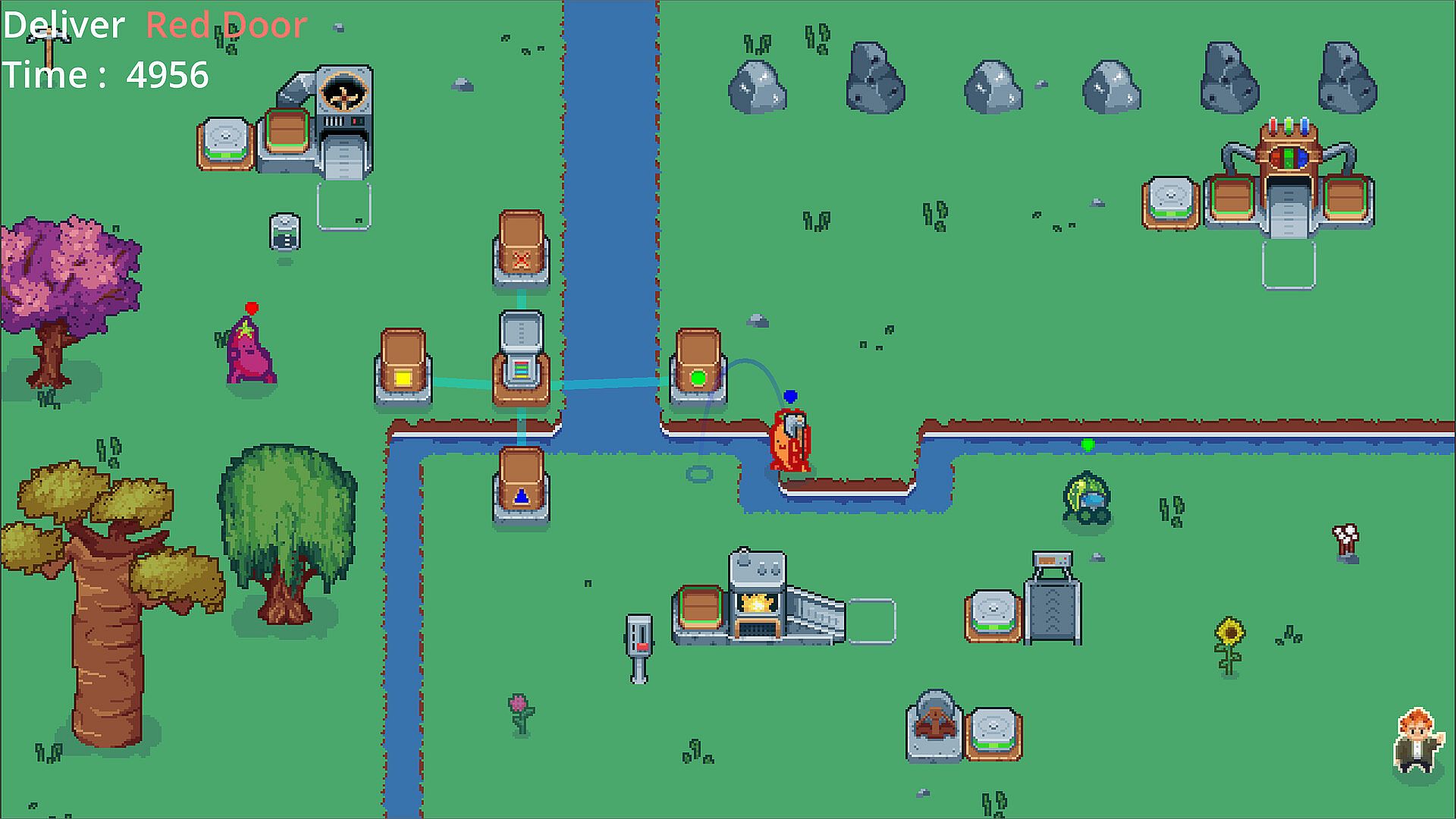 One player : the "Workshop Manager" can’t see the screen but holds the sacred manuals online through an interactive companion site. The others : the "Crafters" can see the workshop and operate the machines, but have no idea how they work without the Manager’s guidance.
