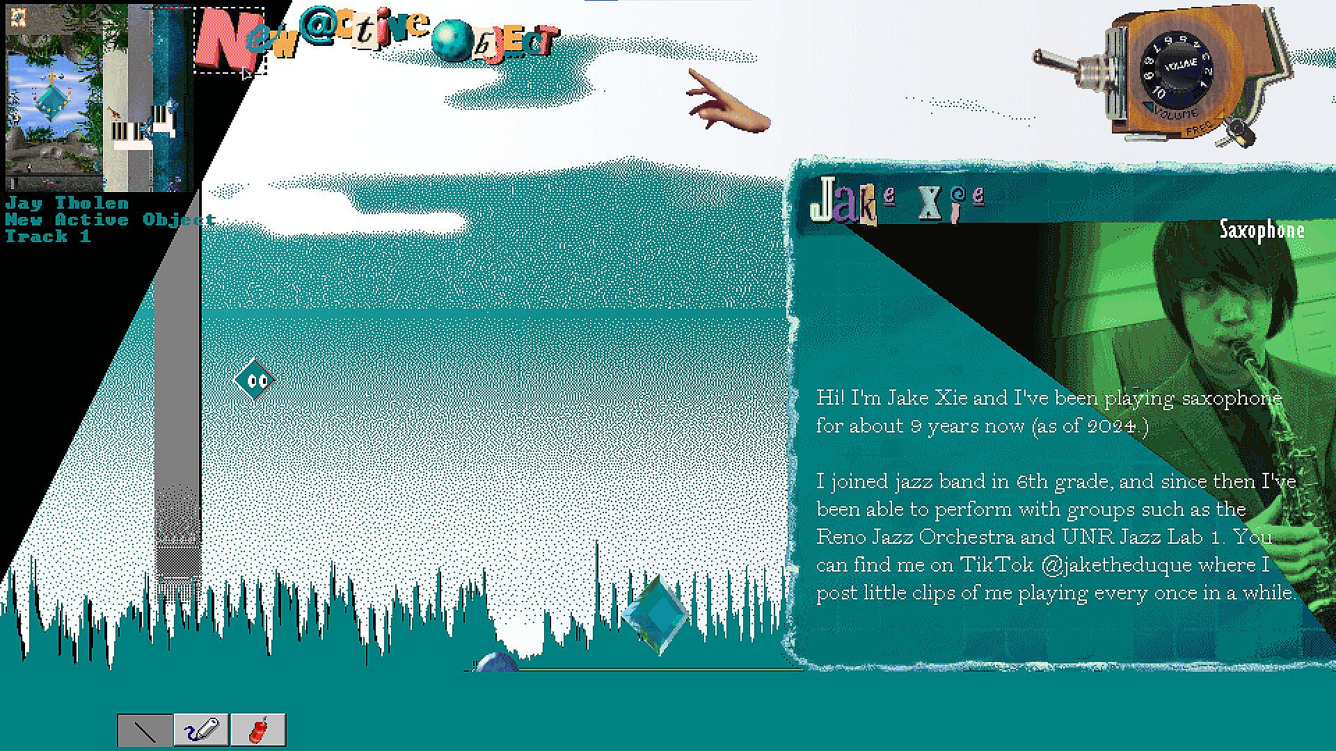New Active Object is a genre-hopping game and multimedia experience synced to the 40-minute genre-hopping Jay Tholen (Dropsy, Hypnospace Outlaw) album of the same name. Remember those auto-playing apps that would appear when you popped pretty much any big album from 1995-2002 into your CD-ROM drive? Remember amateur Klik & Play, The Games Factory, or Game Maker games from around the same time period? New Active Object is inspired by both.