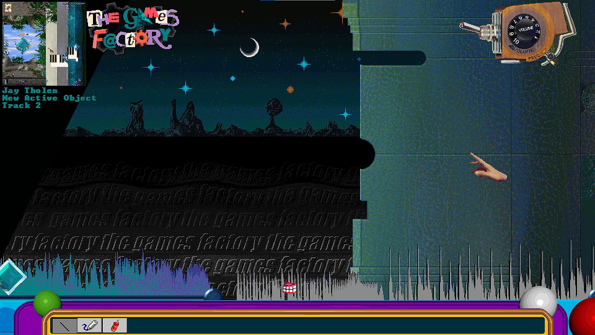 New Active Object, the album, is a jazz/prog-infused concept album crafted using only* samples from the sound effect libraries of 1990s game-making software Klik & Play and The Games Factory. BOUNCE01.WAV, POP.WAV, CRASH1.WAV, THUNDER2.WAV, AIRBUGGY.WAV and ANAPHASE.WAV to name a handful.