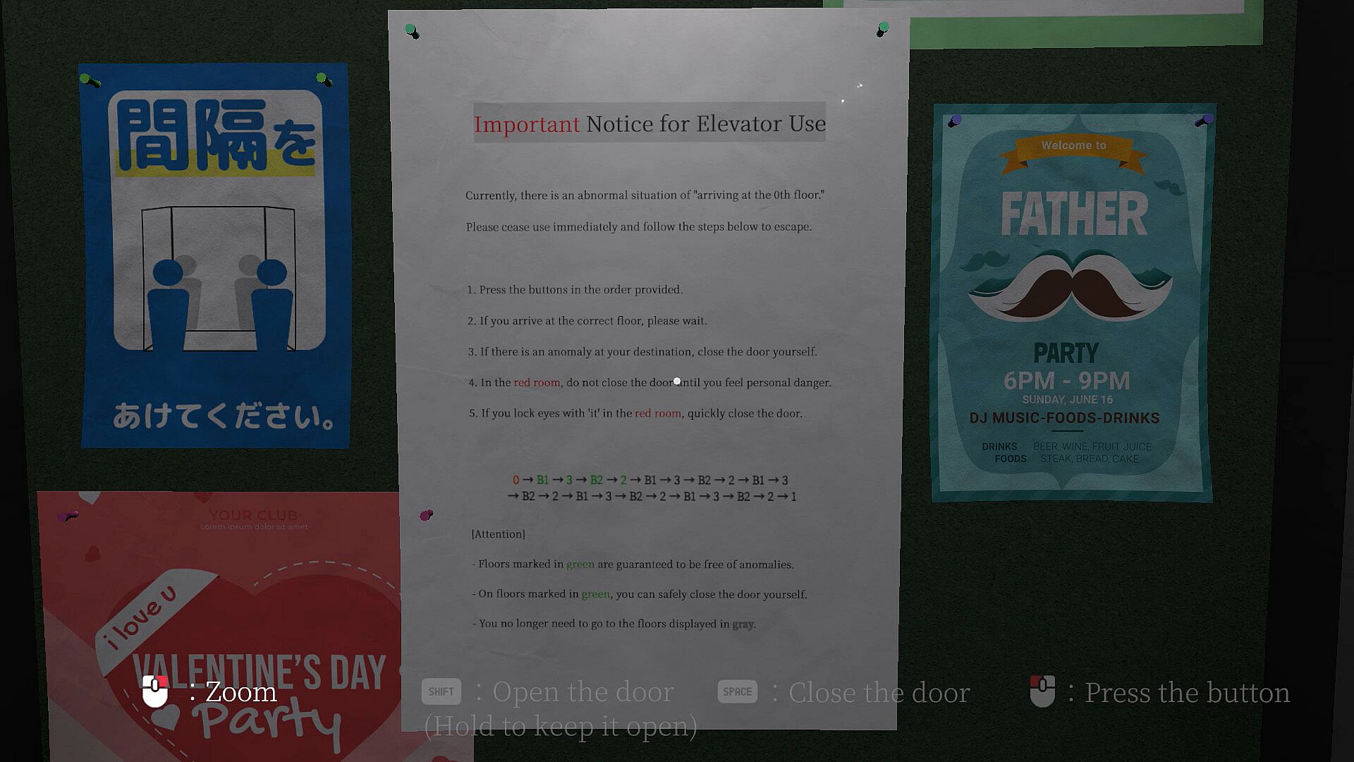 You've been trapped in a cursed elevator that inevitably brings you to the 0th floor. To escape, follow the instructions posted on the notice.