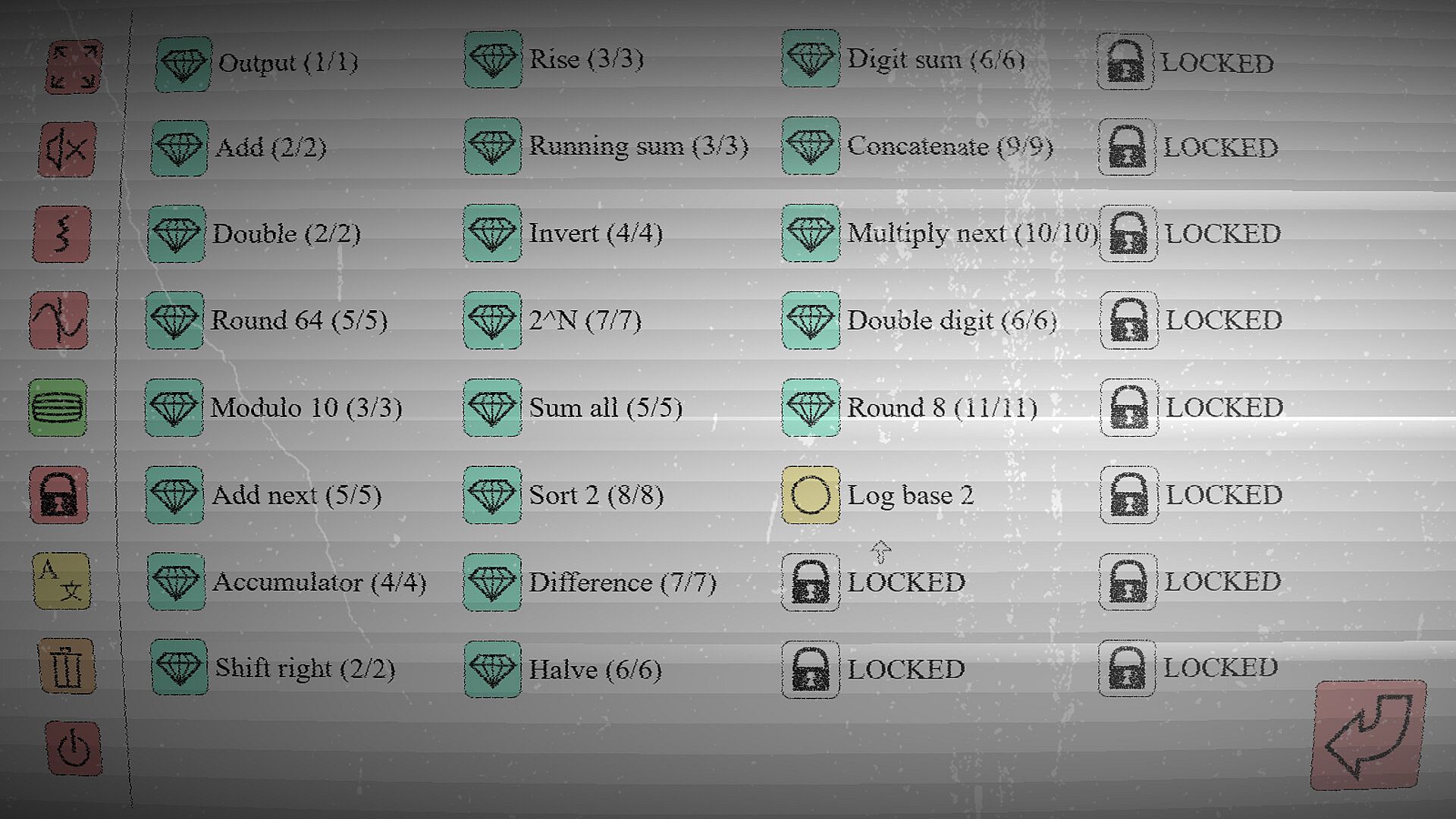 1-DC is an open-ended programming puzzle game (a "zach-like"), featuring a fictional low-level programming language. There are only three base commands; the rest depends on the commands' parameters (somewhat like SIC-1). This challenges the player to think in abstract and minimal terms.