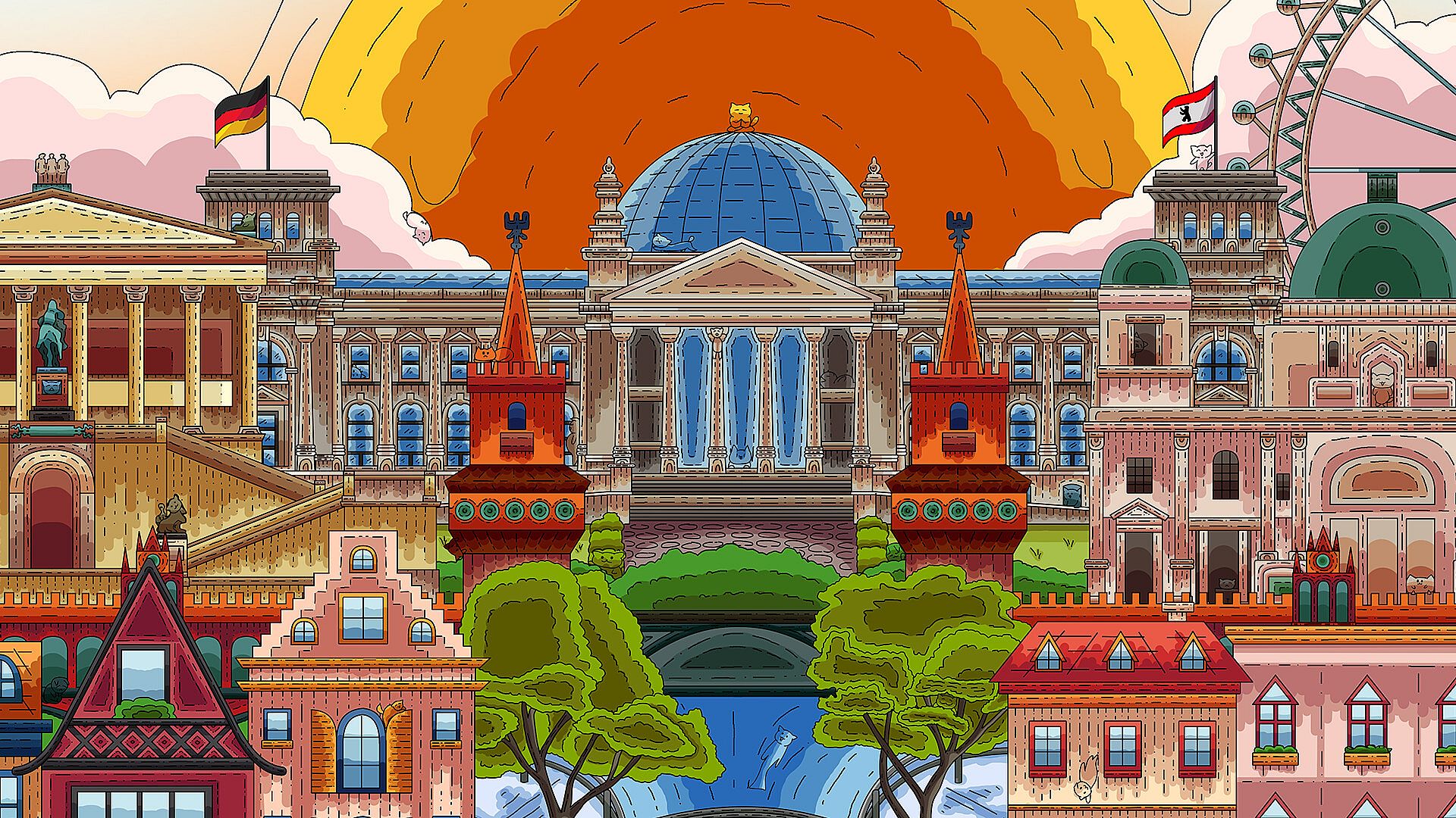 Join the cutest adventure in the Berlin, full of cats! Explore the charming hand-drawn artwork of themed locations as you embark on a quest to find 100 adorable cats hidden throughout the game.