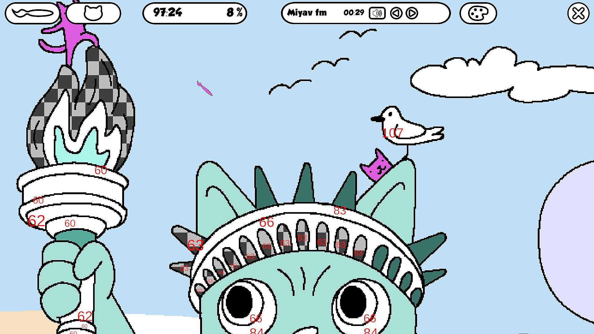 Gameplay Features Discover 100 hidden cats in each scene Explore hand-drawn, country-themed illustrations Relax with color-by-numbers ♂️ Play solo or with a friend in cozy co-op Clear your mind and boost creativity with Meow FM
